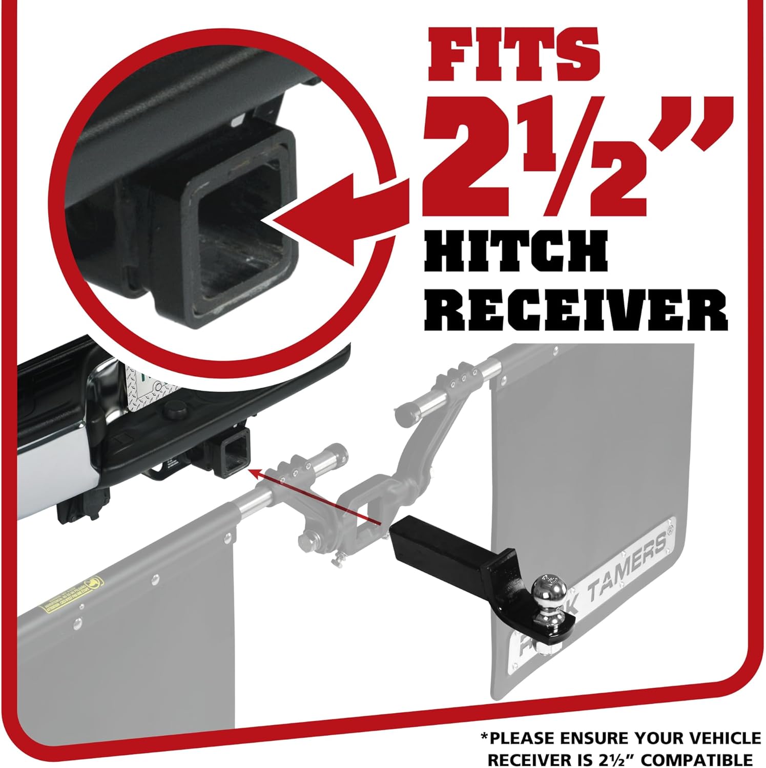 Rock Tamers 00110 - 2.5" Official Mudflap System - 2.5" Hitch Receiver - Hitch Mounted Mud Flaps to Protect What You Tow - Removeable and Adjustable-Black/Stainless Steel - 1 System