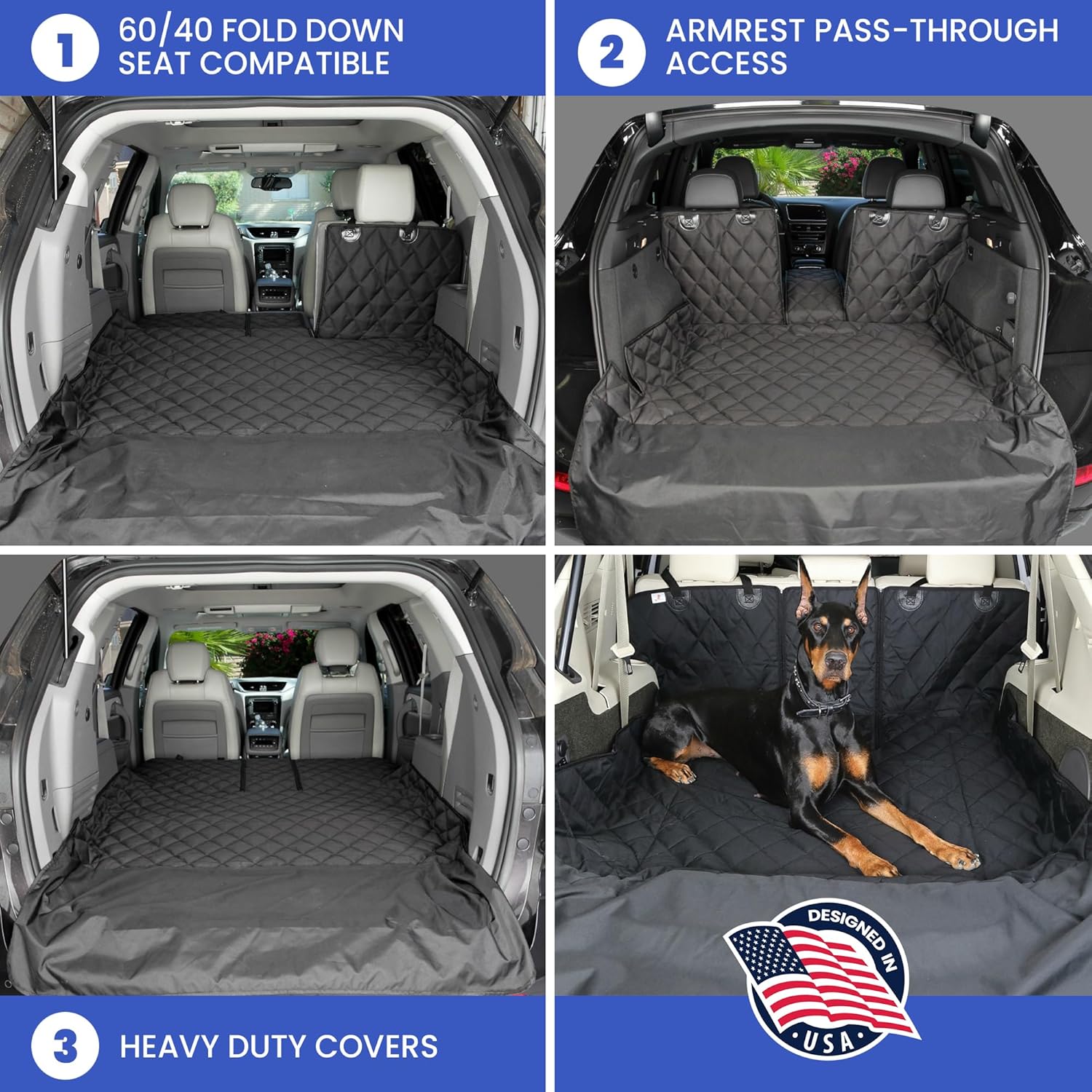 - BUILT TO LAST WITH PREMIUM MATERIALS: Made with heavy-duty 600D polyester and reinforced with thick UV-coated straps, our dog cargo liner for SUVs offers superior durability. Nylon clips provide a strong, secure hold to keep the cover in place during travel. Ideal for everyday protection (not chew-proof).