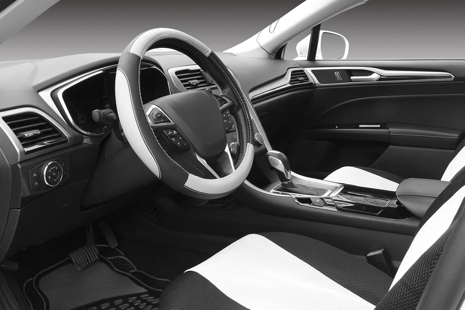 SEG Direct Black and Gray Microfiber Auto Car Steering Wheel Cover Universal 15 inch