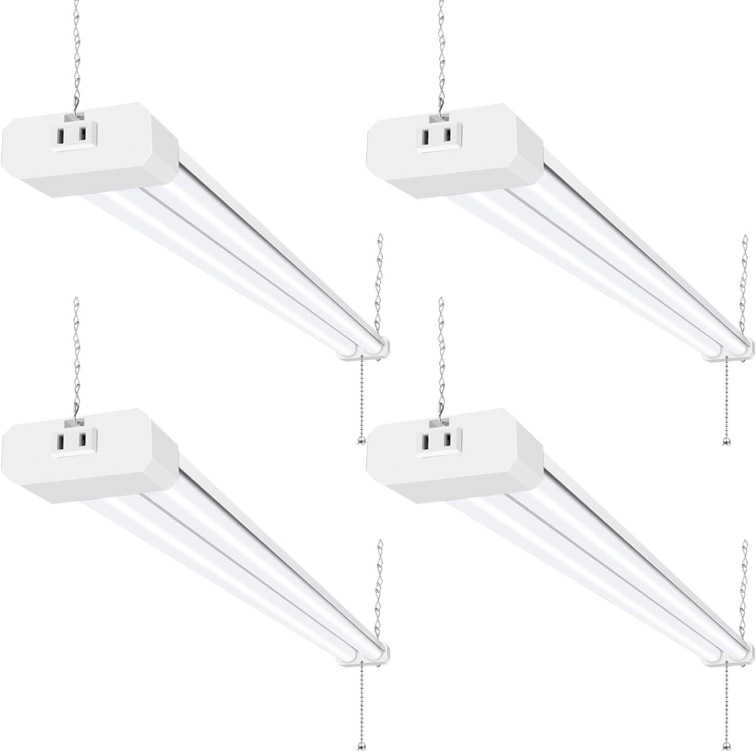 hykolity 4 Pack 4FT LED Shop Light, Linkable Utility Shop Lights, 42W, 5000K Daylight White Shop Light for Garages, Workshops,Hanging or FlushMount, Power Cord with Pull Chain Switch, ETL