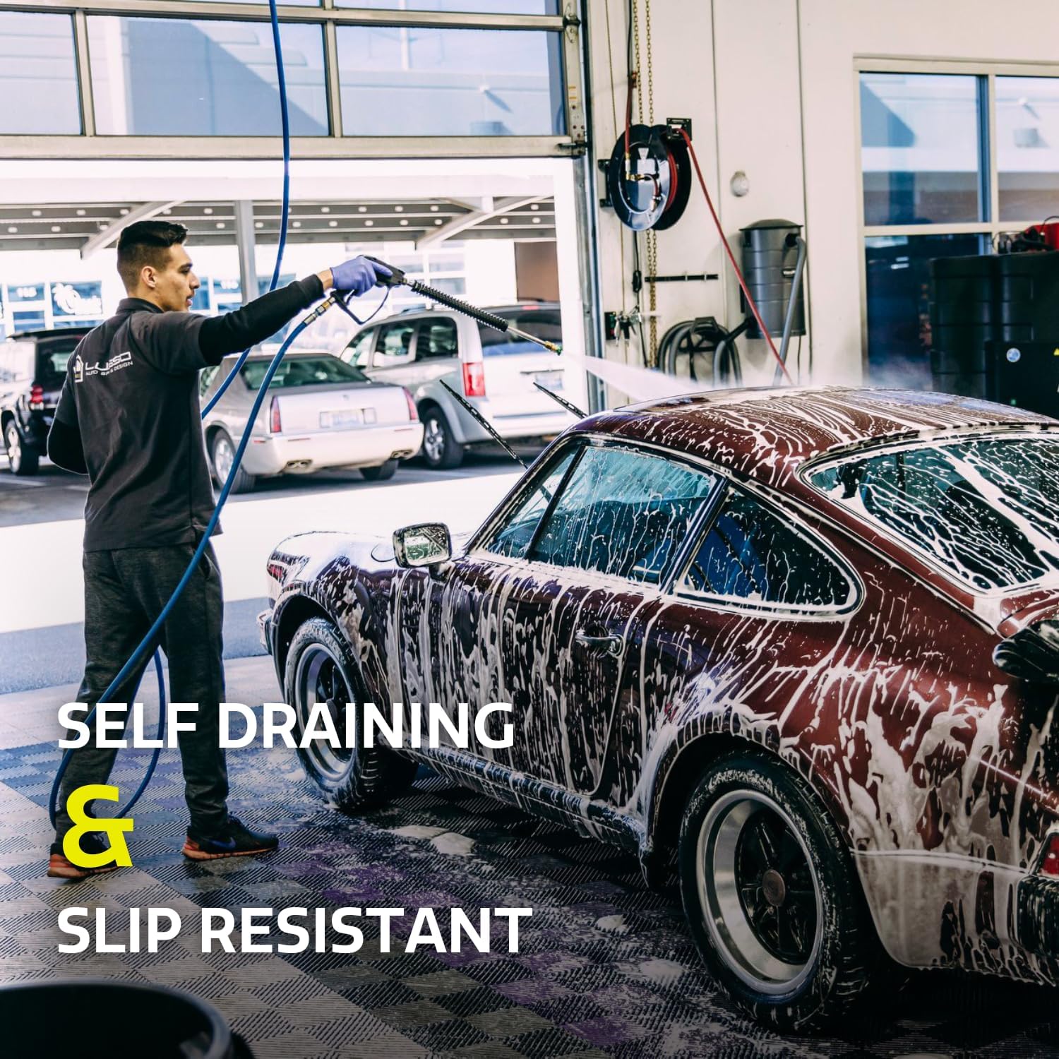- Self-Draining & Slip-Resistant – Patented design maximizes airflow and drainage, keeping floors dry and safe, with an anti-fatigue, impact-absorbing understructure.