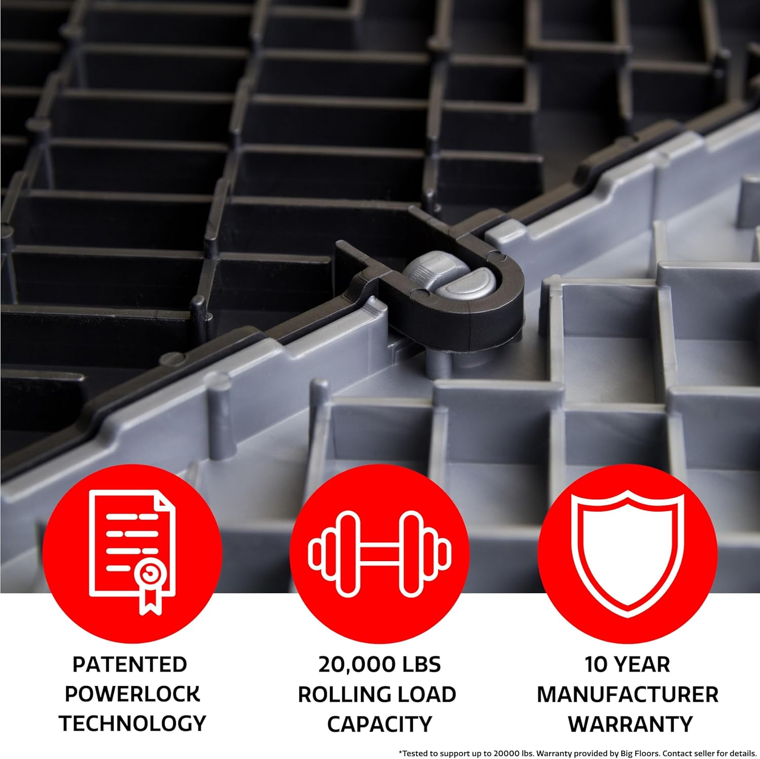 - DURABLE PREMIUM GARAGE FLOORING: The tiles are made from non-toxic, high impact copolymer and built to withstand a harsh garage environment. Resistant to oil, grease, petroleum, antifreeze, and most household chemicals. The durable surface can support rolling loads of over 40,000 lbs.