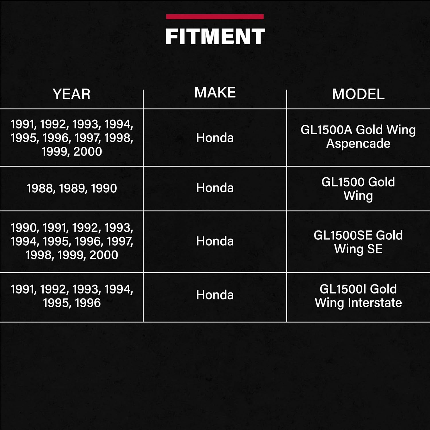 - Fits the following models - Honda Goldwing GL1500 1991-2000