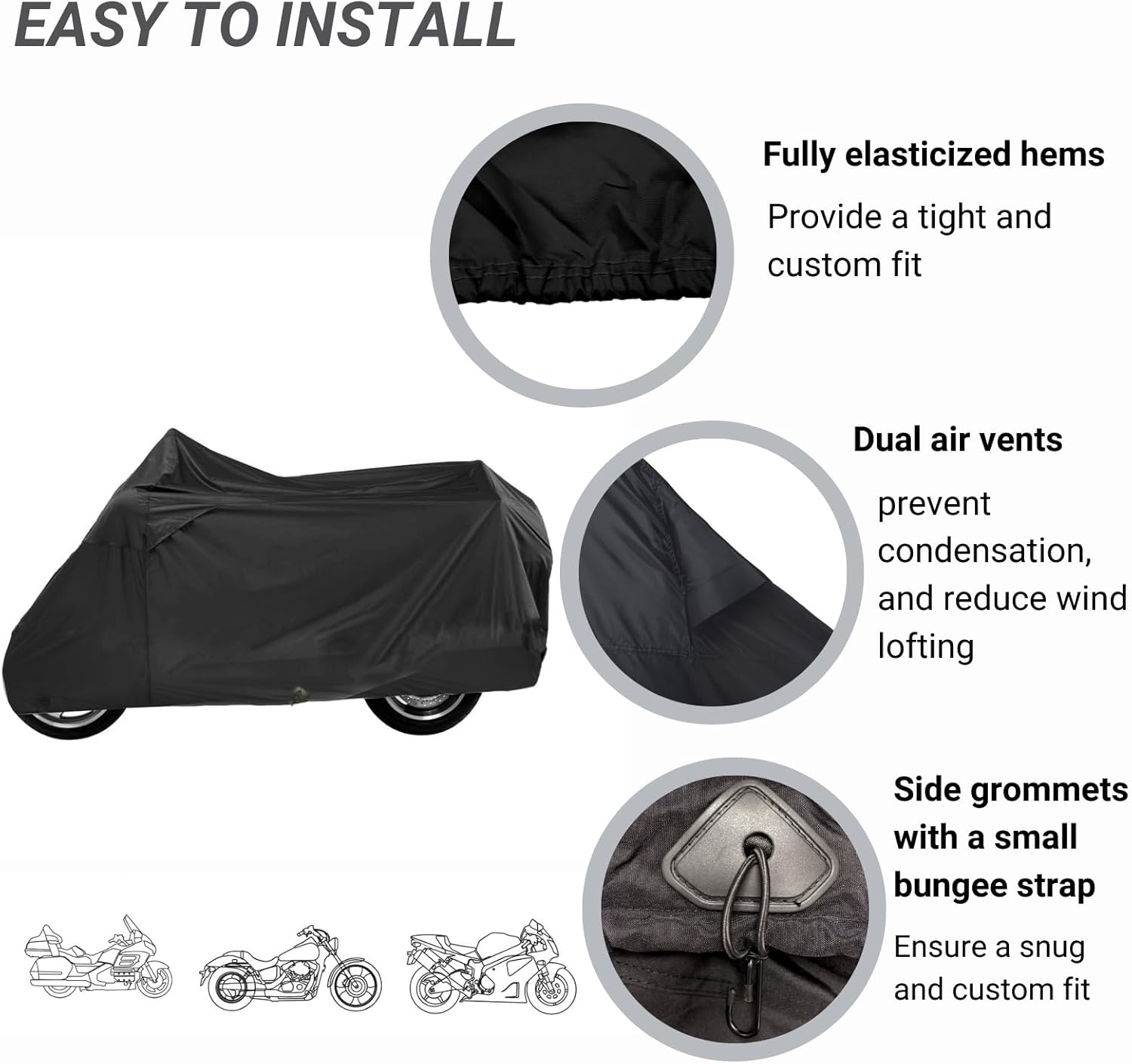 Deluxe Motorcycle Cover, Waterproof All Weather Outdoor Protection Universal Motorcycle Cover, Fade & Tear Proof Polyester fits Motorbike Scooter up to 80" L