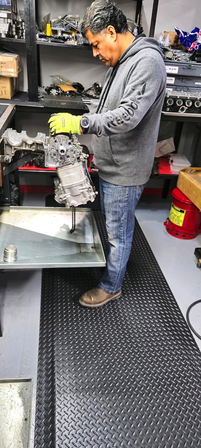 Rhino Mats, American Classic Diamond Anti-Fatigue Mats, Industrial Ergonomic Comfort Standing Mat for Work, Home, Garage, Office, Kitchen or Anywhere (Black 9/16" Thick, 4 FT. x 17 FT.)