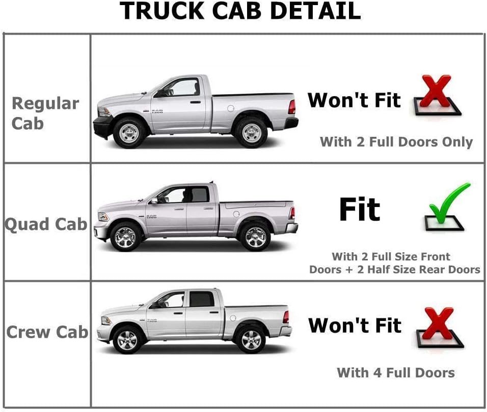 - Compatible with 2002-2008 Dodge Ram 1500 Quad Cab (Aka Crew Cab) Only,2003-2009 Dodge Ram 2500/3500 Quad Cab (Aka Crew Cab) Only (Not Fit Regular or Mega Cab)