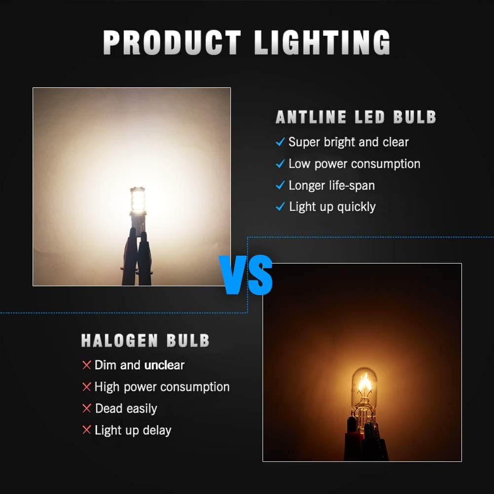 - 【ADVANTAGE】(Set of 20 bulbs) 42-pieces extremely bright 3014 LED chips per bulb. Unique 360 degree lighting design to enhance brightness, 300% brighter than original halogen bulb, longer life span & low power consumption.