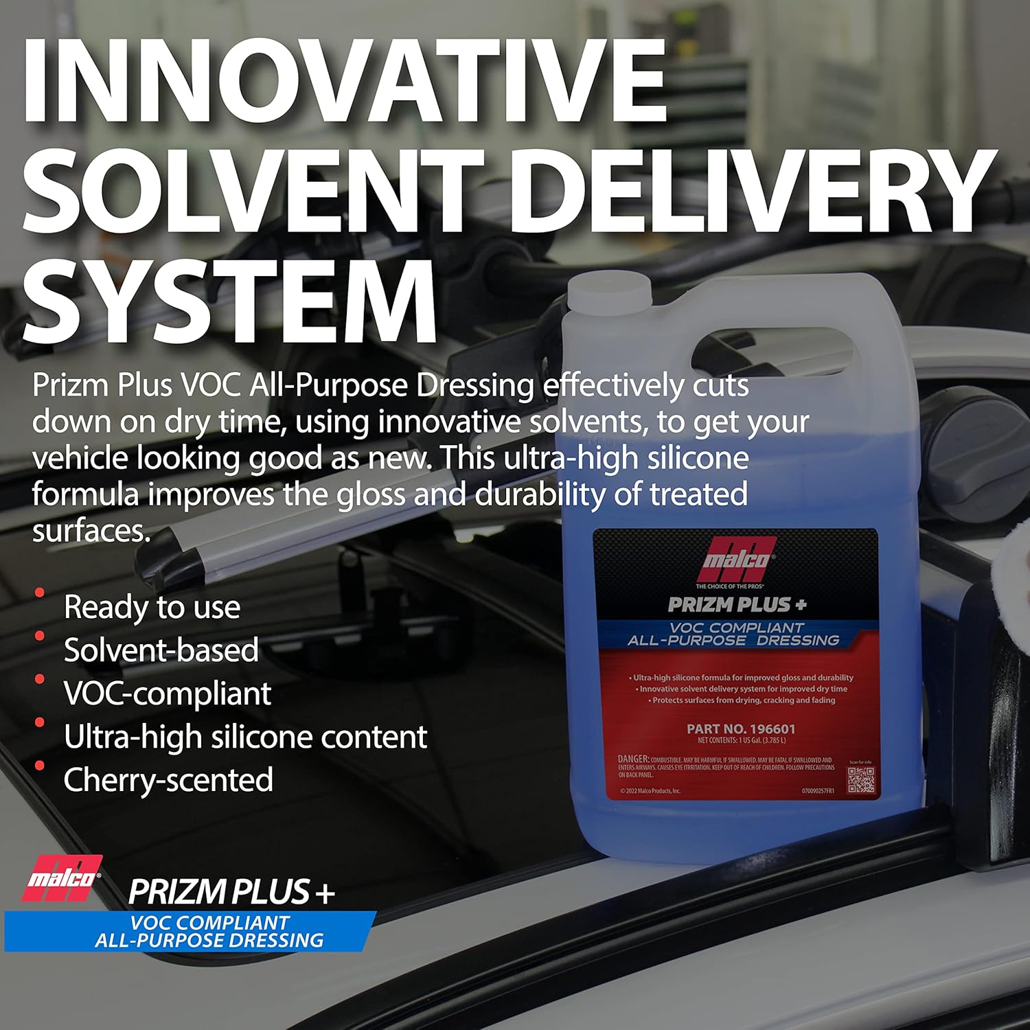 Malco Prizm Plus All-Purpose Dressing – Ultra High Silicone Formula Gives Superior Shine and Durability to Interior Rubber and Vinyl Surfaces/Protects Against Fading and Cracking/1 Gallon (196601)