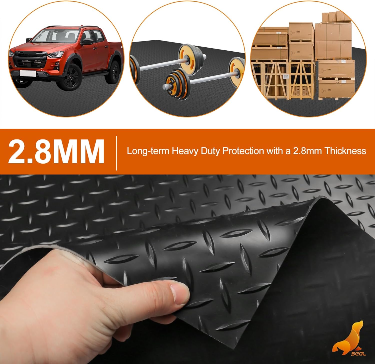 - [Protect Your Floors Like Never Before] - Keep your garage floor looking new with SEAL’s mats. Their special diamond plate design makes sure you won’t slip, giving you a safe way to walk in and out. These mats stop all kinds of damage like scratches and spills from ruining your floors, offering full coverage.