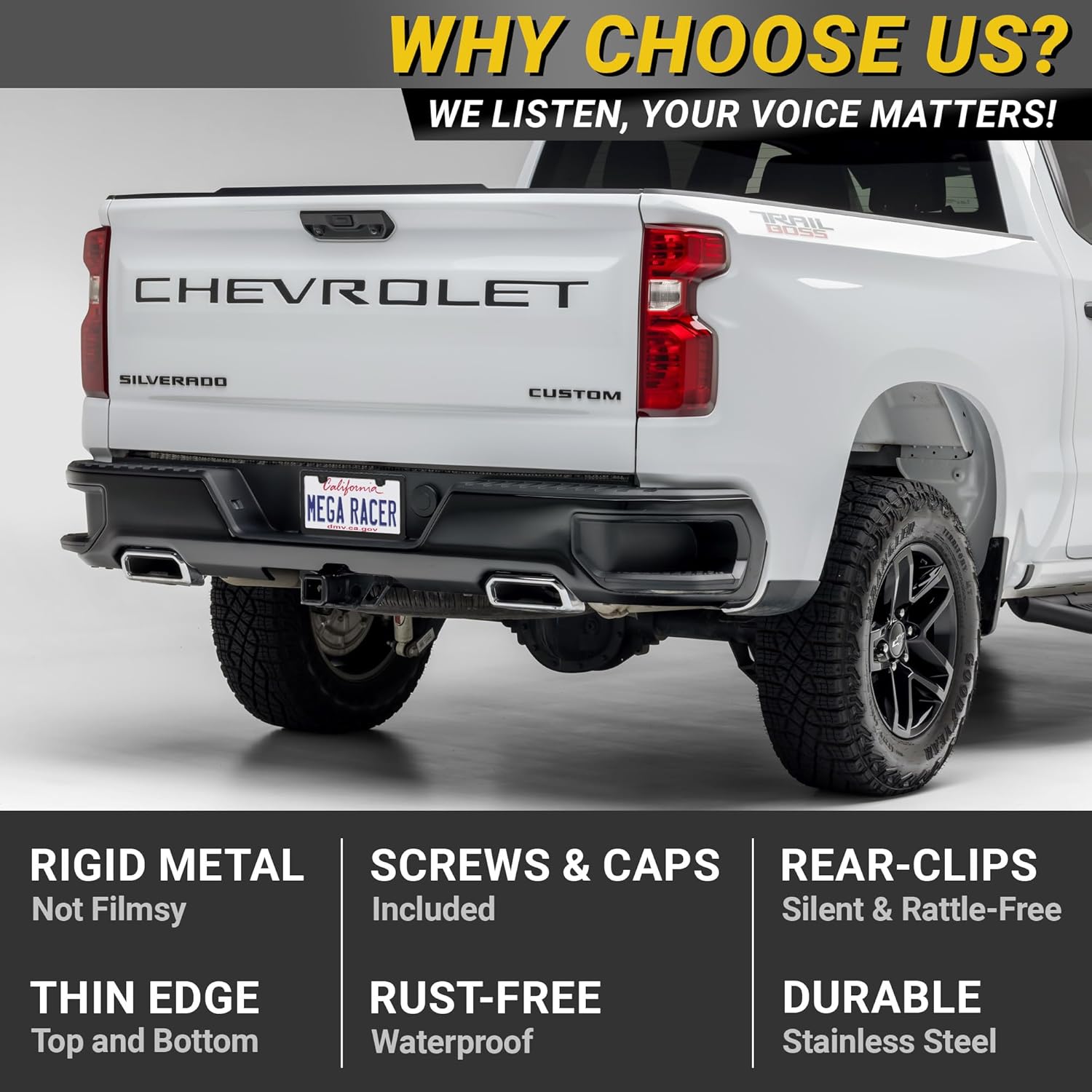 - CUSTOMER SERVICE: Mega Racer's Black License Plate Frame automotive accessories will leave both you and your ride satisfied. If you have any questions please send us a message via Amazon Message and we will be sure to respond within 24 hours.