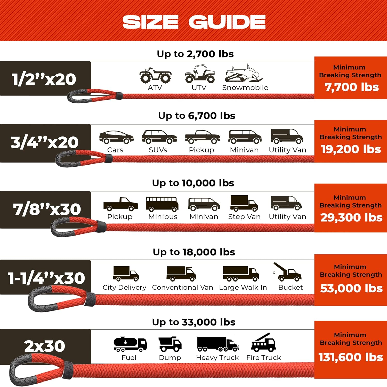 MiolleGear Kinetic Recovery Ropes (Firecracker RED, 2" x30') Super Heavy Duty for Tractor and Semi Truck