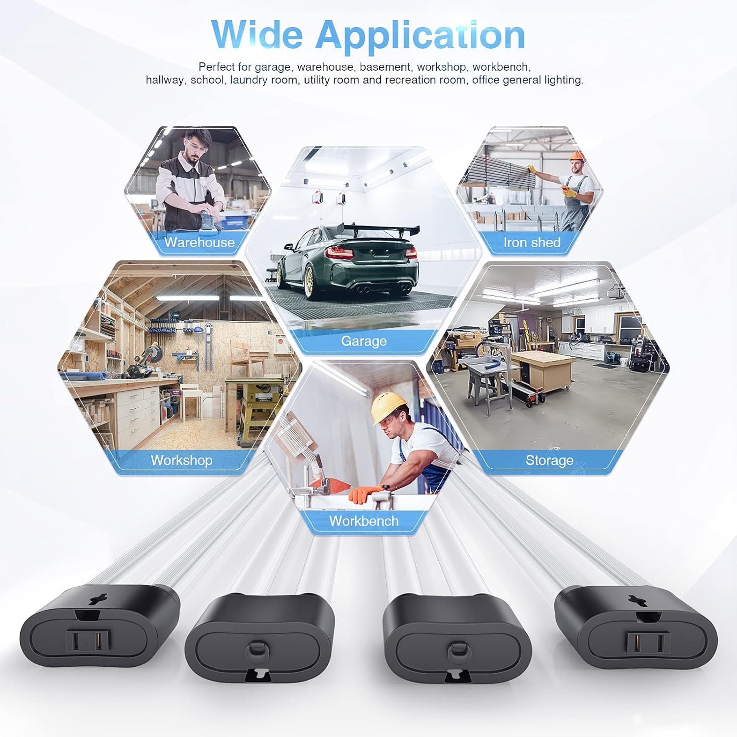 - đź’ˇ WIDE APPLICATION - Ideal for a variety of settings including garages, workshops, basements, and utility rooms, this versatile LED shop light meets all your lighting needs with exceptional performance and efficiency.