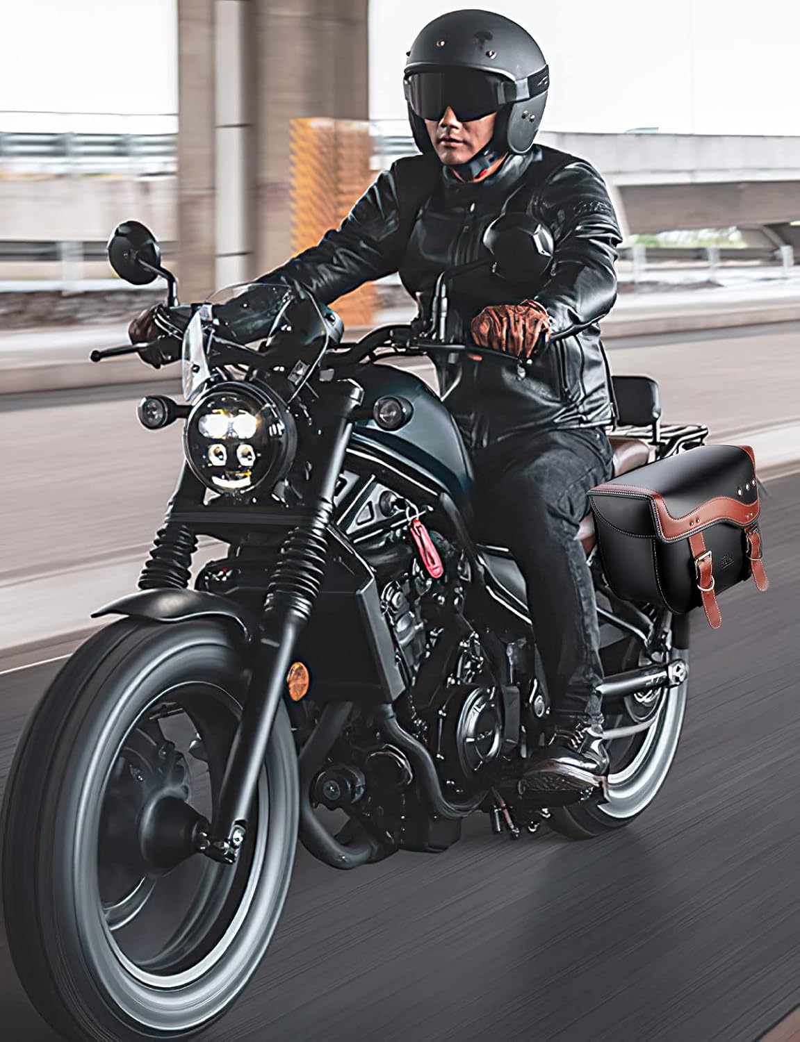 KEMIMOTO Motorcycle Saddlebags, 30L Large Capacity Saddle Bags Motorcycles, PU Leather Motorcycle Luggage Bag for Sportster Softail Dyna V-star Shadow, Universal Motorcycle Accessories, Brown