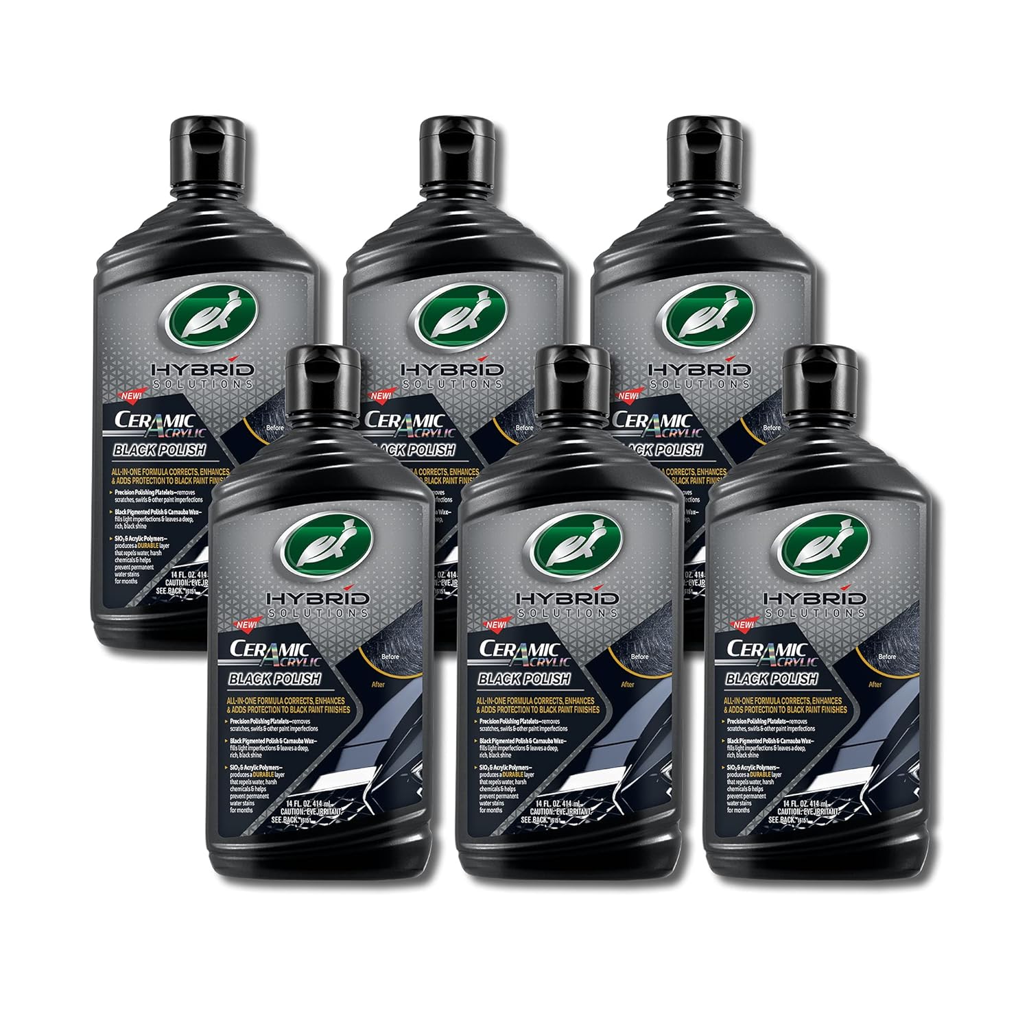 Turtle Wax 53448-6PK Hybrid Solutions Ceramic Acrylic Black Polish and Wax Formulated for Black Car Paint, Removes Surface Scratches and Swirl Marks, Provides Water Repellency, 14 oz. (Pack of 6)
