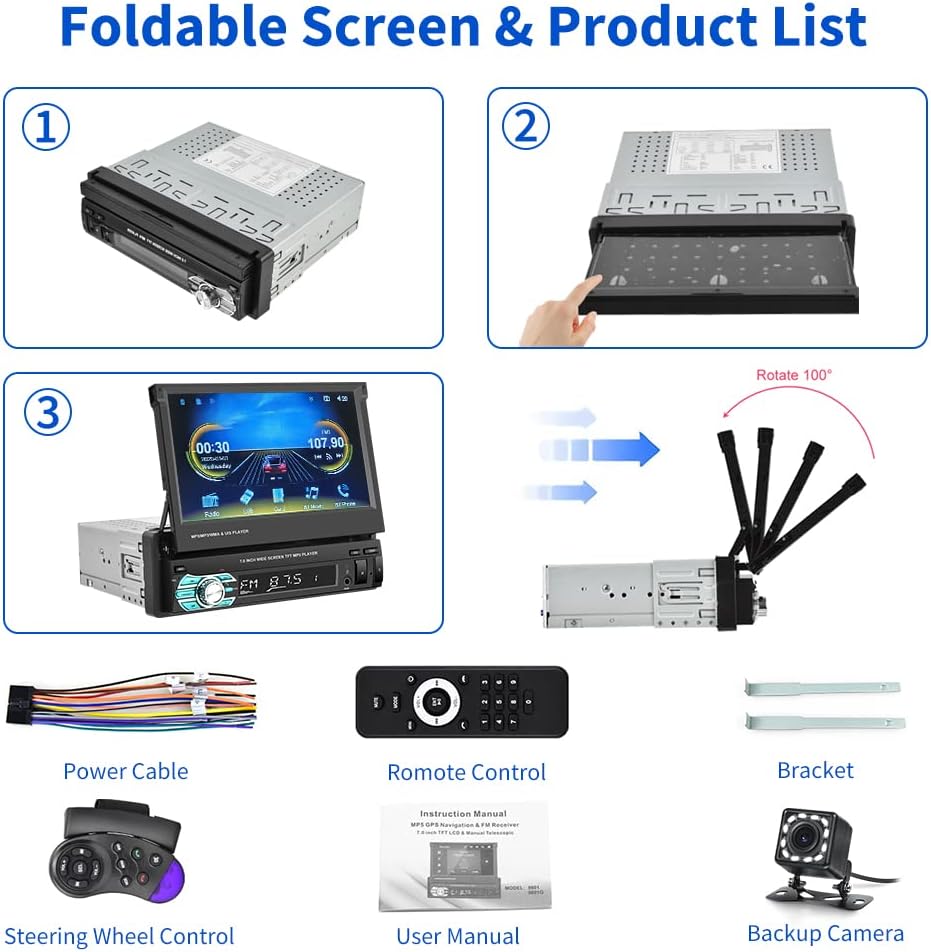 - 【Bluetooth & FM Radio】The flip out single din car radio with hands-free Bluetooth makes it more convenient to making or receiving important calls and wireless music sharing via your smartphone. FM radio with high-quality stereo, which can search channels in full-automatic ways