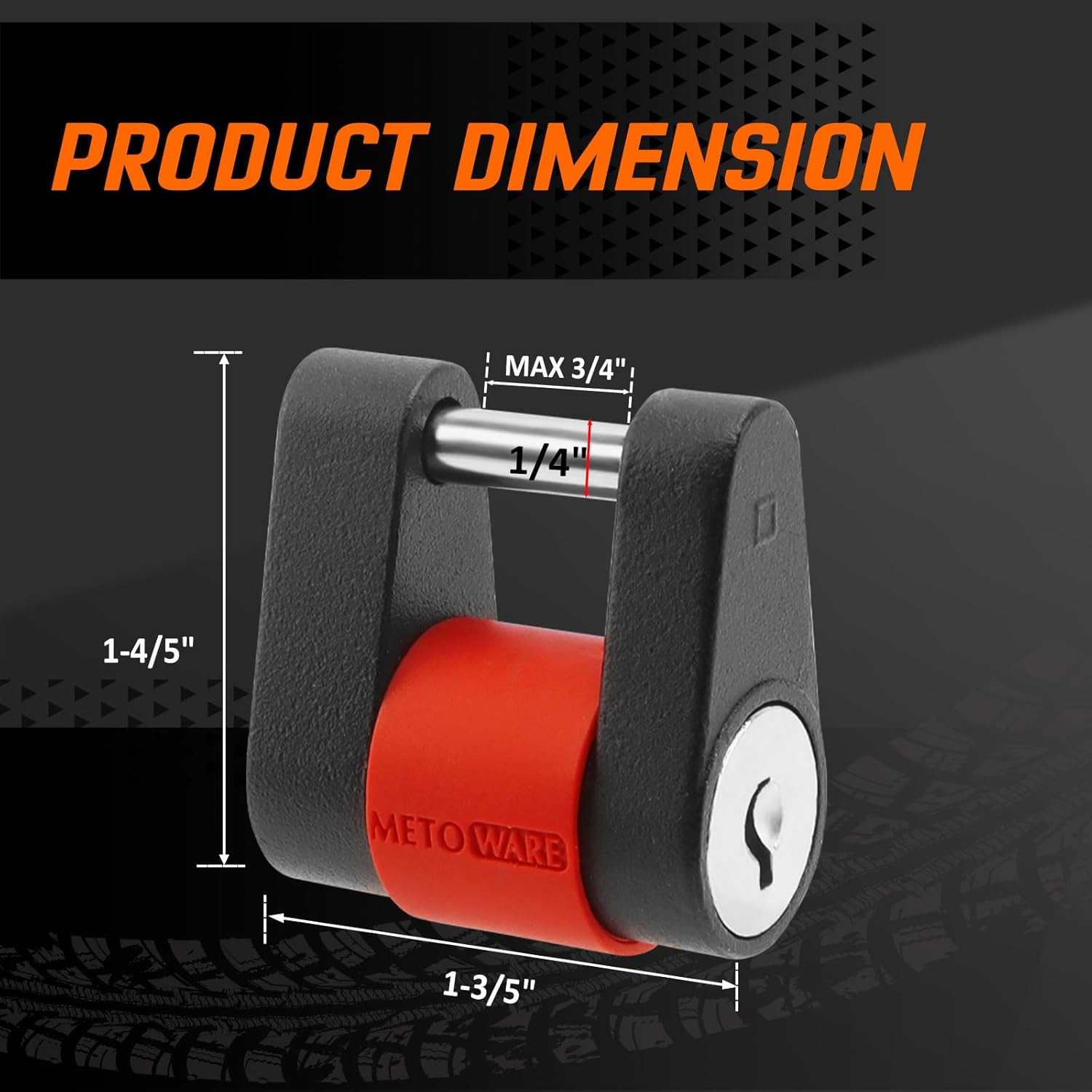 METOWARE Trailer Tongue Coupler Lock, 1/4" Dia with 3/4" Span Trailer Tongue Lock, Heavy-Duty Steel Trailer Coupler Lock for Tow Boat RV Truck Car's Coupler with Anti-Rattle Rubber Ring (1 Pack)