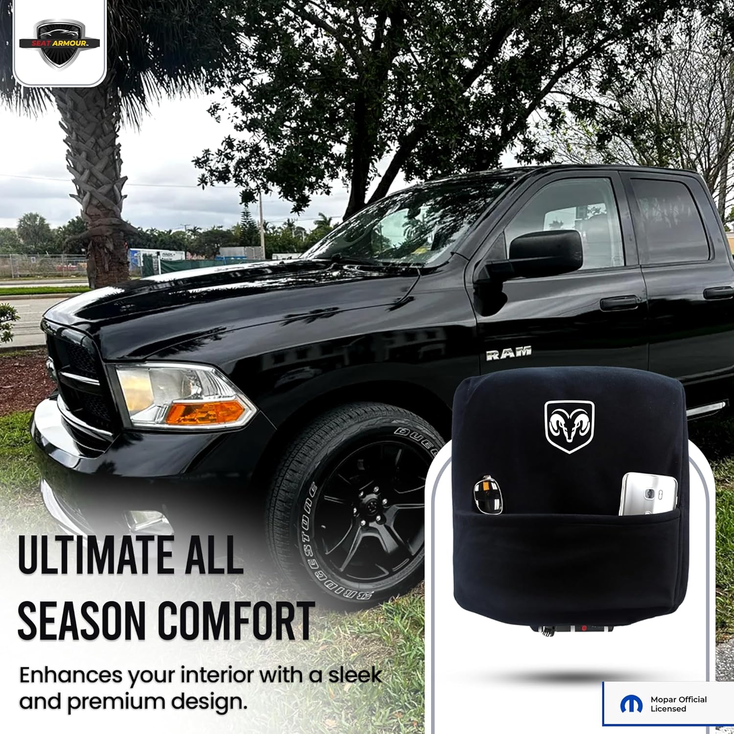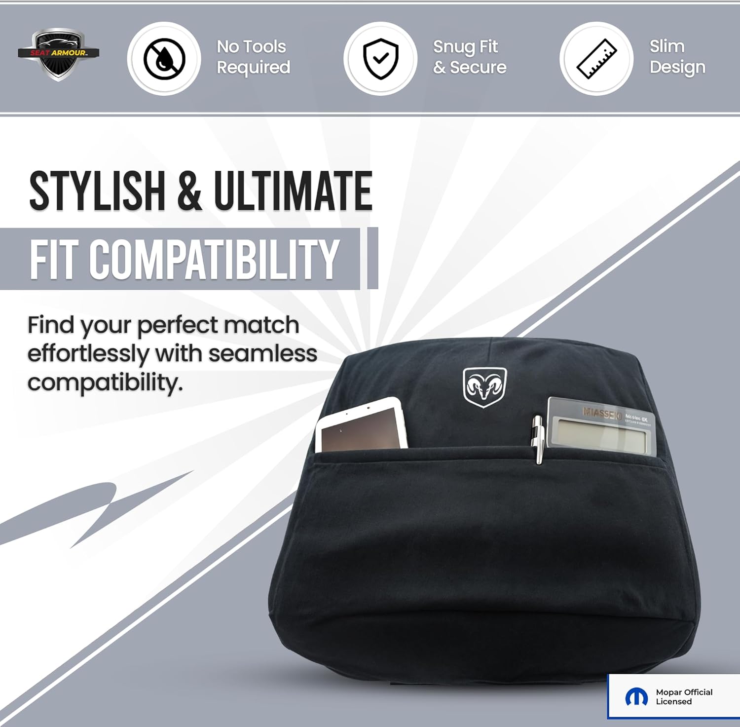- EFFORTLESS INSTALLATION: Installs in seconds with no tools required; simply slip the cover over your Ram console for an instant, secure fit.