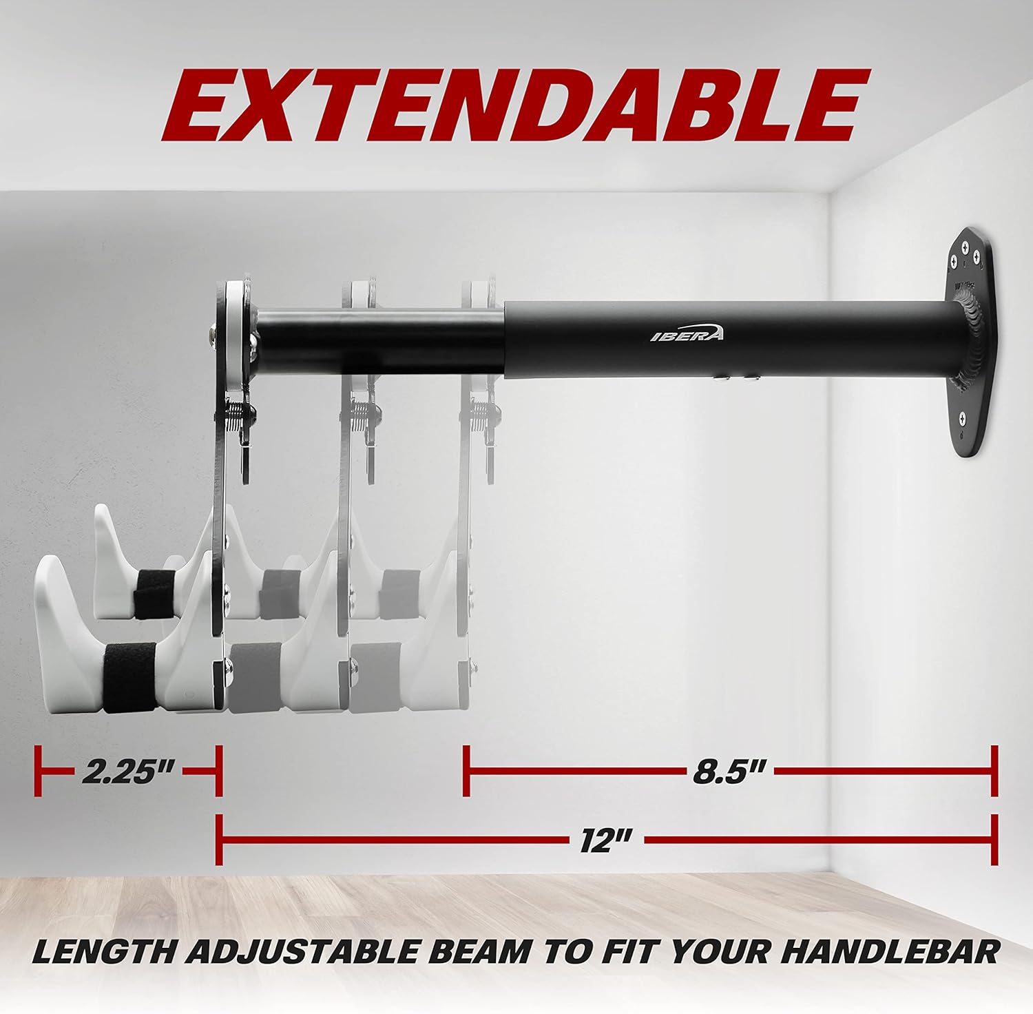 Ibera Bike Wall Mount - Secure Bike Storage up to 18kg with Adjustable Frame Holder & Soft Rubber Cradles - Garage Bike Rack for Road, MTB, Kids, Hybrid Bikes - Easy Installation & Space-Saving Design