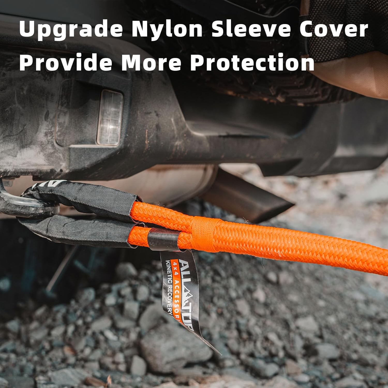 - 【RECOVERY MUST-HAVE】 ALL-TOP Kinetic Rope is one of the most reliable overlanding gear you should have to safeguard your exploring trips. Double braided with 100% Nylon N66 and coated with Mil-spec Polymers, provides trustable 48000Lbs Break Strength Rating and 16000Lbs Work Load Limit.