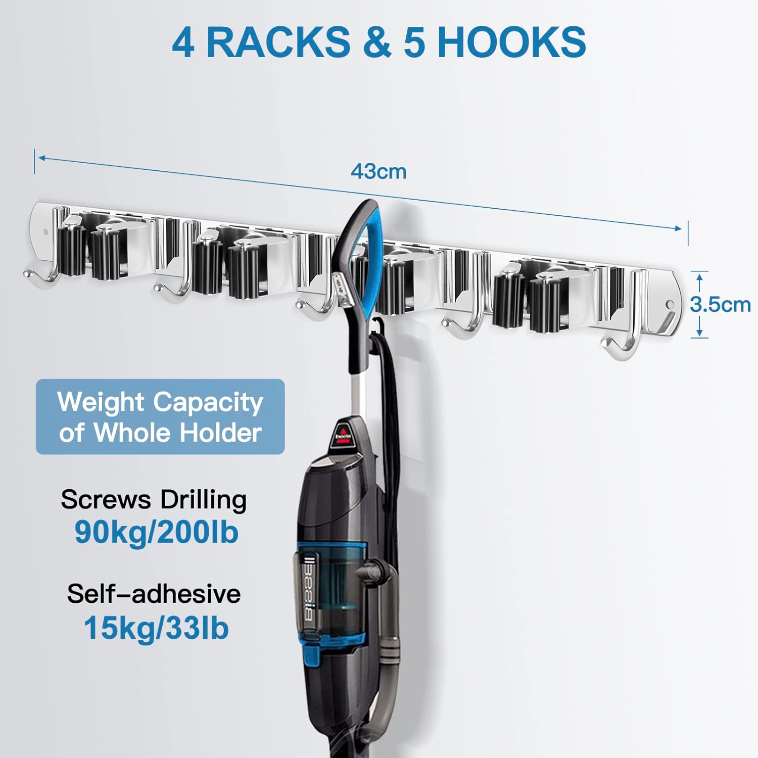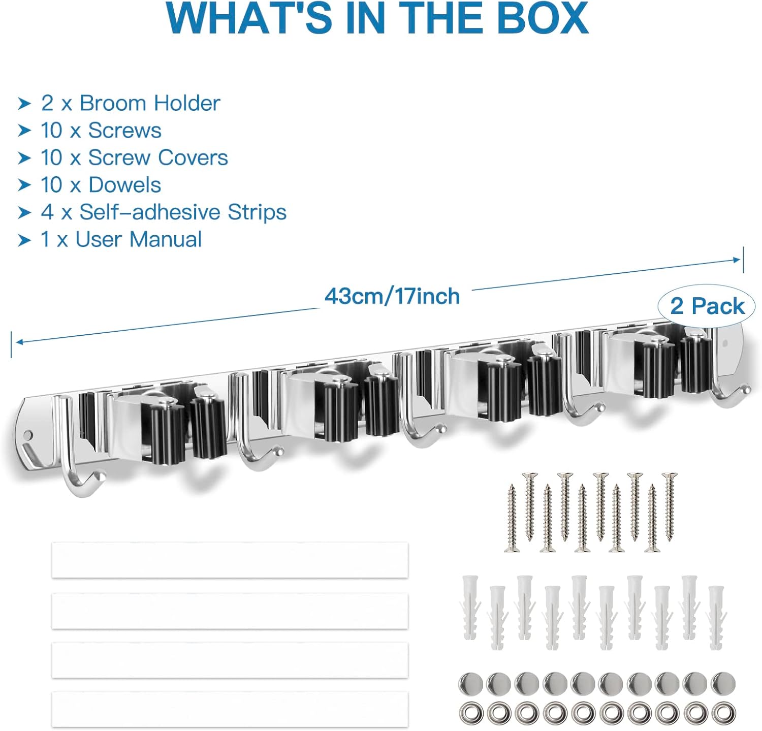 - STRONG & STURDY: Broom organizer wall mount is made of 304 stainless steel, corrosion-resistant, moisture proof and waterproof. Compared with the plastic broom rack, it's more stronger and sturdy. And this broom hanger wall mount can hold up to 200 pounds