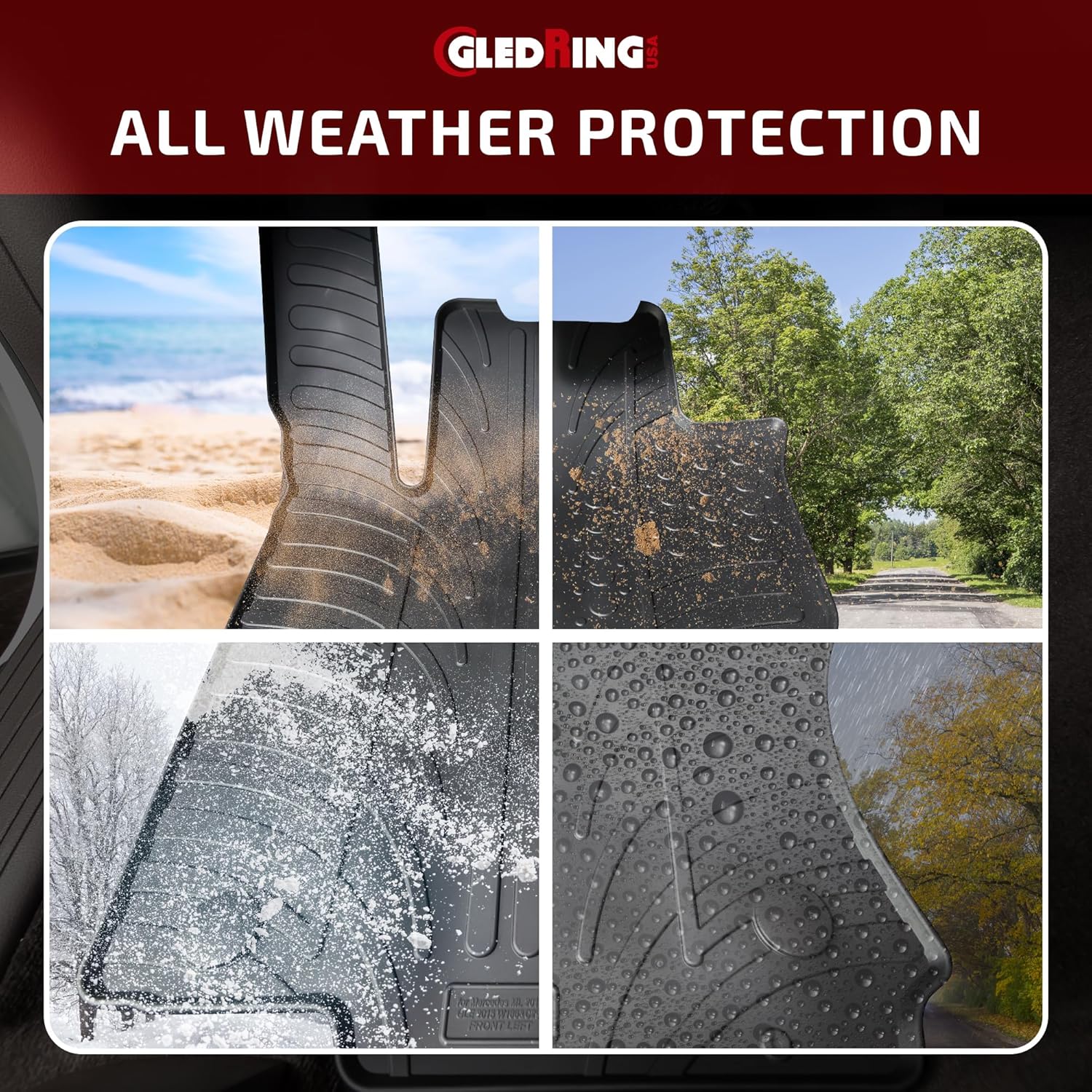 - ALL-WEATHER PROTECTION β Gledring USA Custom Fit mats offer year-round protection for your vehicle's interior. Built to last, this combo pack shields your vehicle from rain, snow, and mud while keeping both the floor and cargo areas clean.