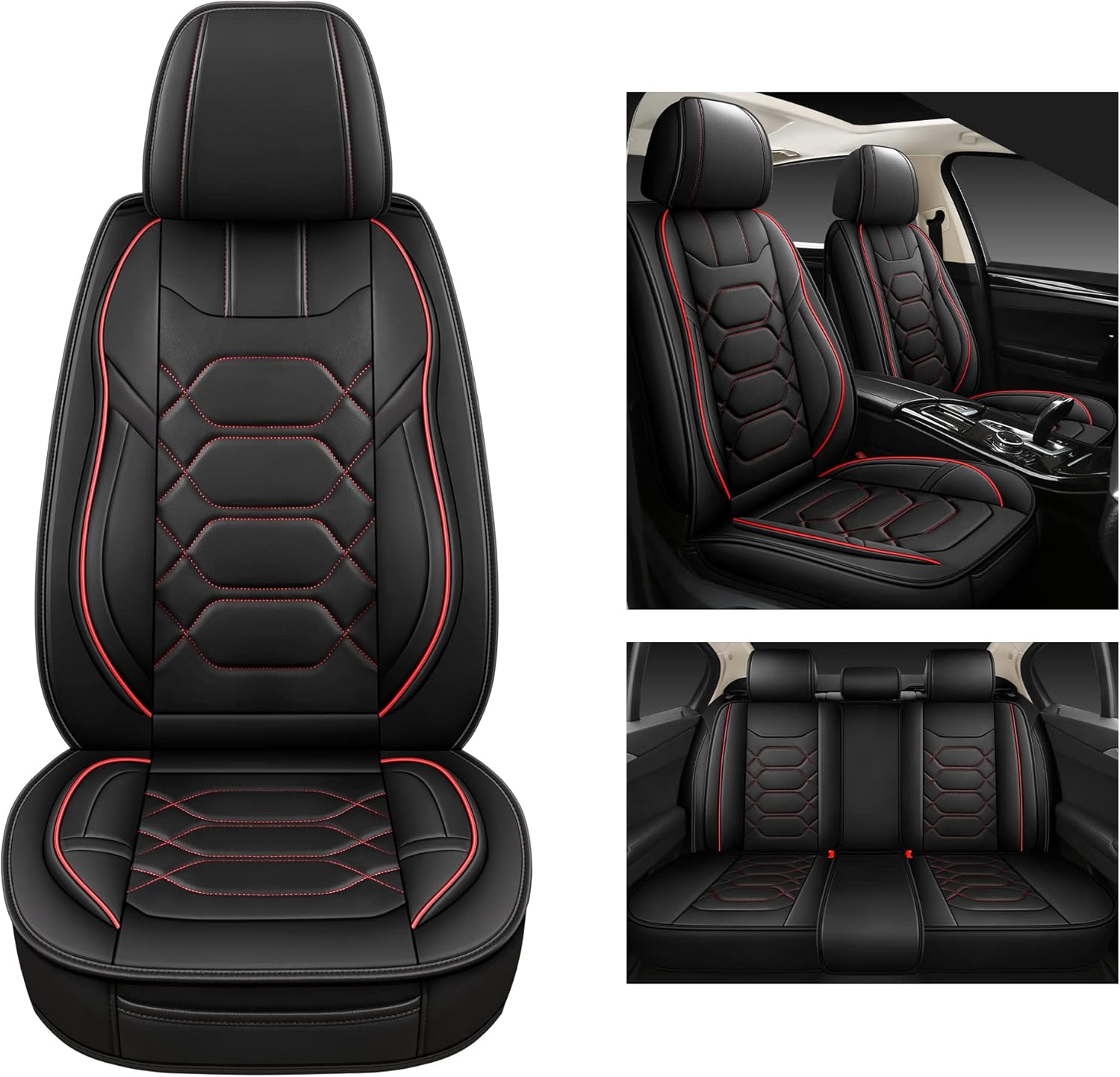 Pariitadin Leather Car Seat Covers Full Set, Waterproof Faux Leather Seat Covers for Cars, Non-Slip Car Interior Covers Universal Fit for Most Cars Sedans Trucks SUVs, Black/Red