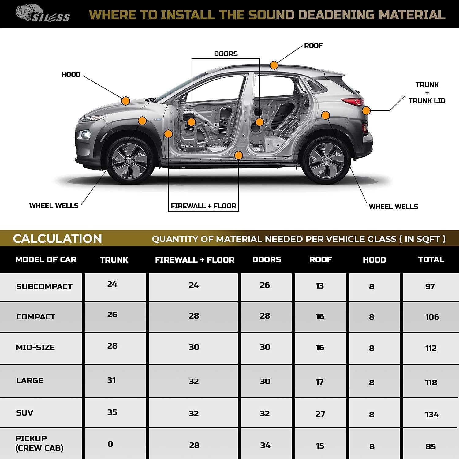 Siless 80 mil (2mm) Car Sound Deadening mat - Butyl Automotive Sound Deadener - Noise Insulation and Vibration Dampening Material 10 sqft (0.95 sqm)