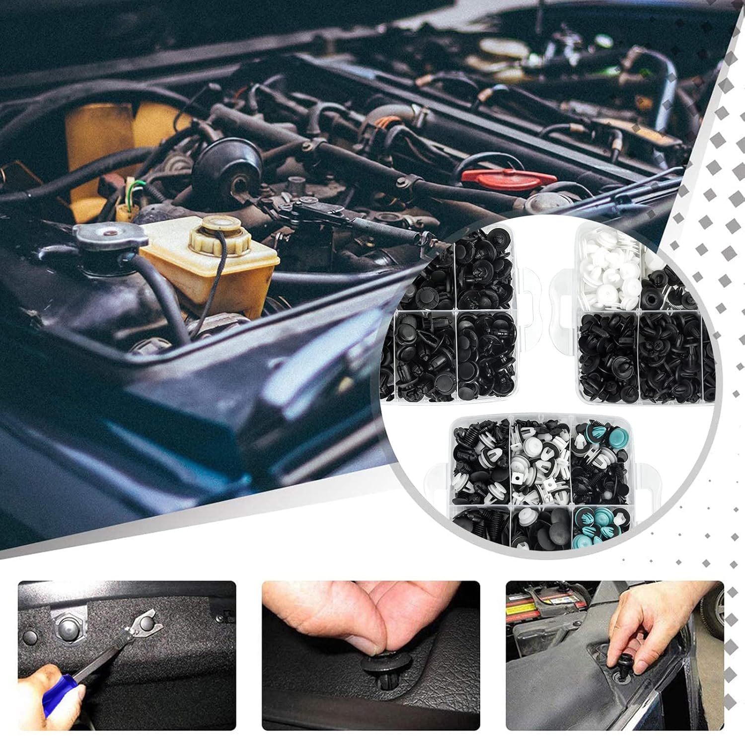- DURABLE MATERIAL: These car retainer clips are made of durable nylon and metal material, anti-wear and anti-corrosion, would not break or crack easily during use.All packed in a plastic container for easy organization and storage