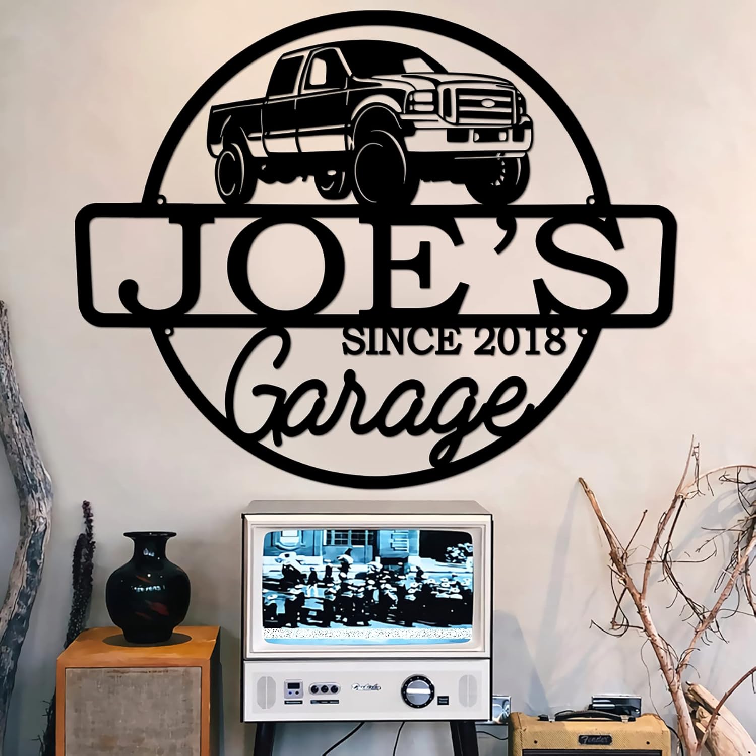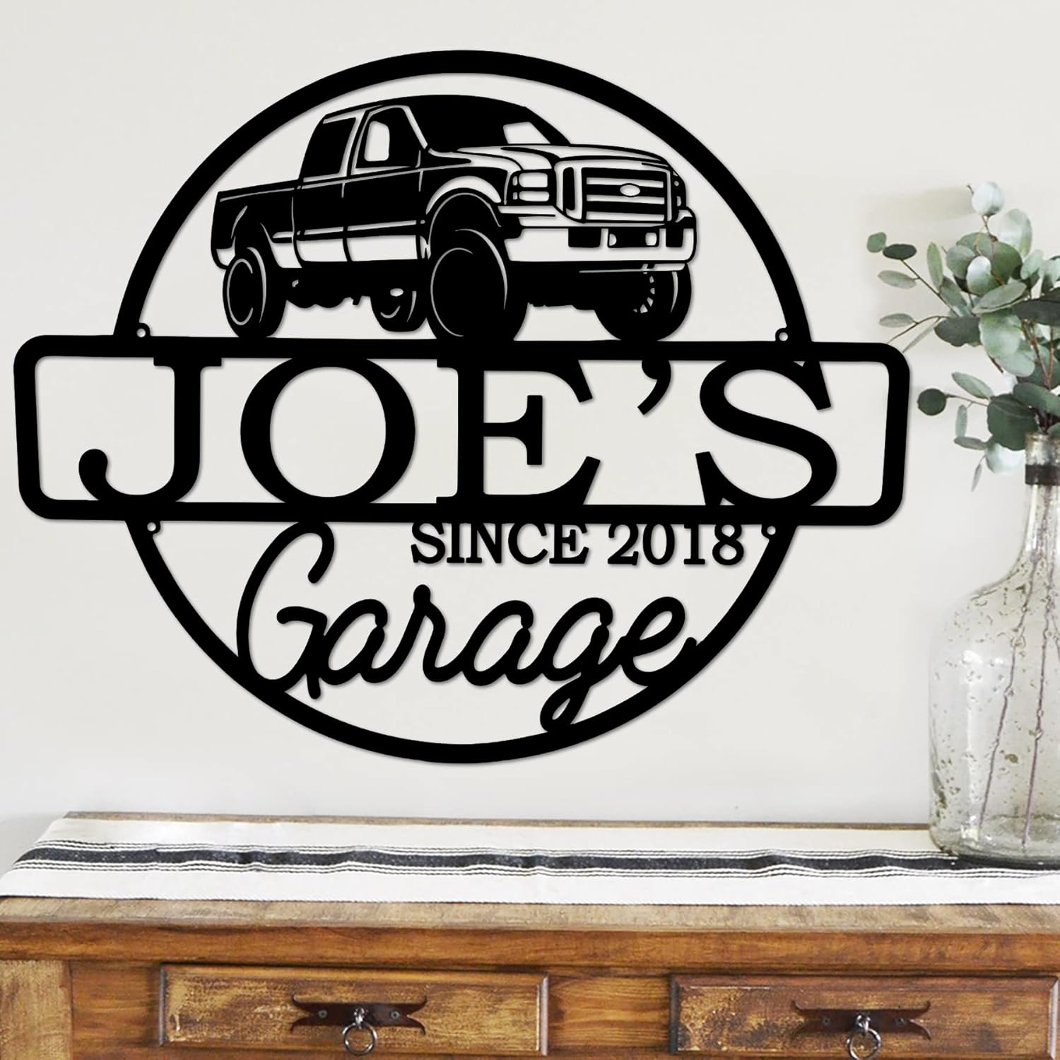 Personalized Metal Name Garage Sign, Custom Plaque Wall Art, Worshop Metal Sign, Housewarming Est Year Man Cave Dad's Gift, Mechanic Workshop American Car Pickup
