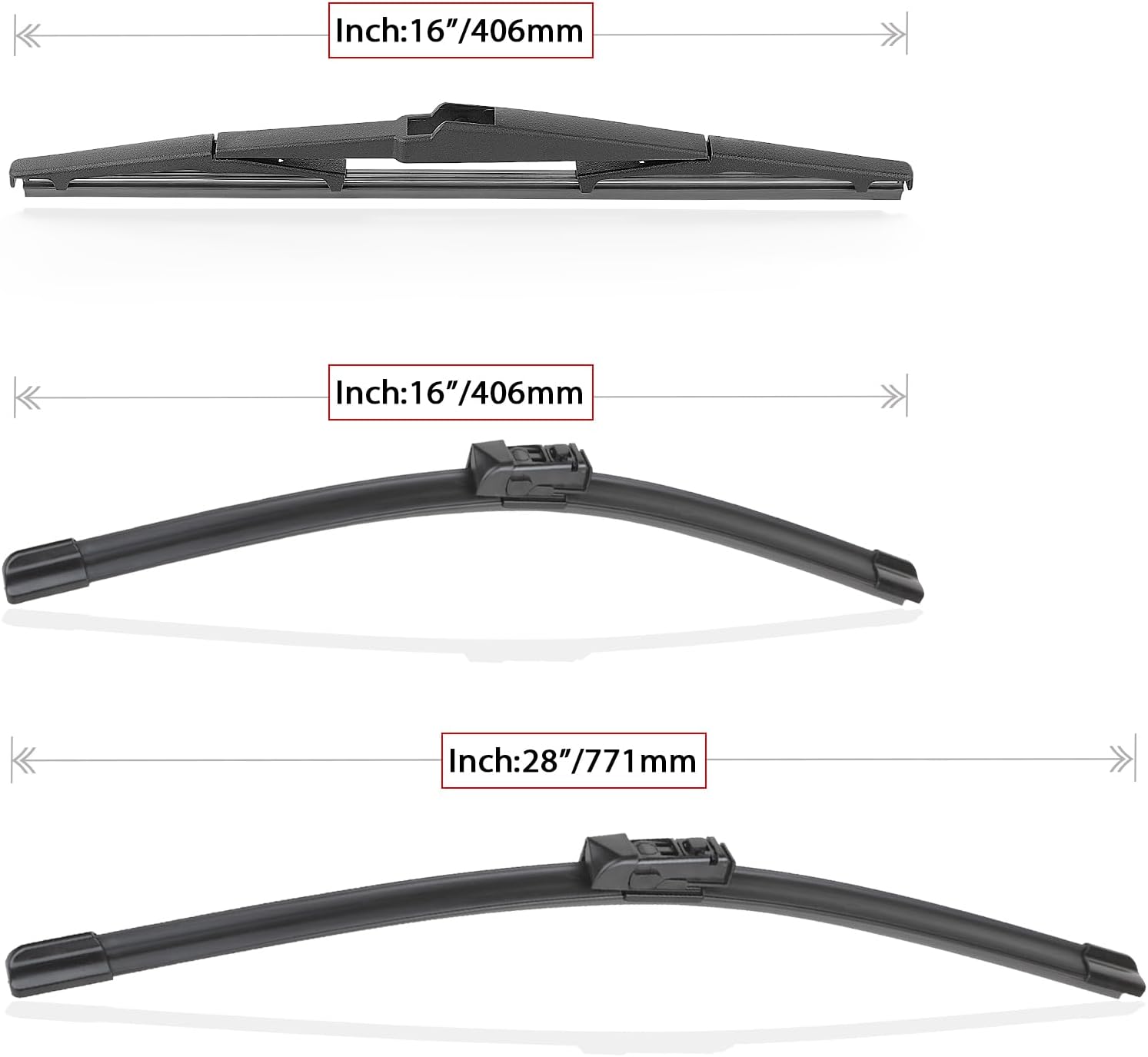 Windshield Wiper Blades Replacement for Toyota Prius 2016-2022 Original Factory Quality Front Rear Wipers Blade Set for My Car - 28" 16" 16" (Pack of 3)