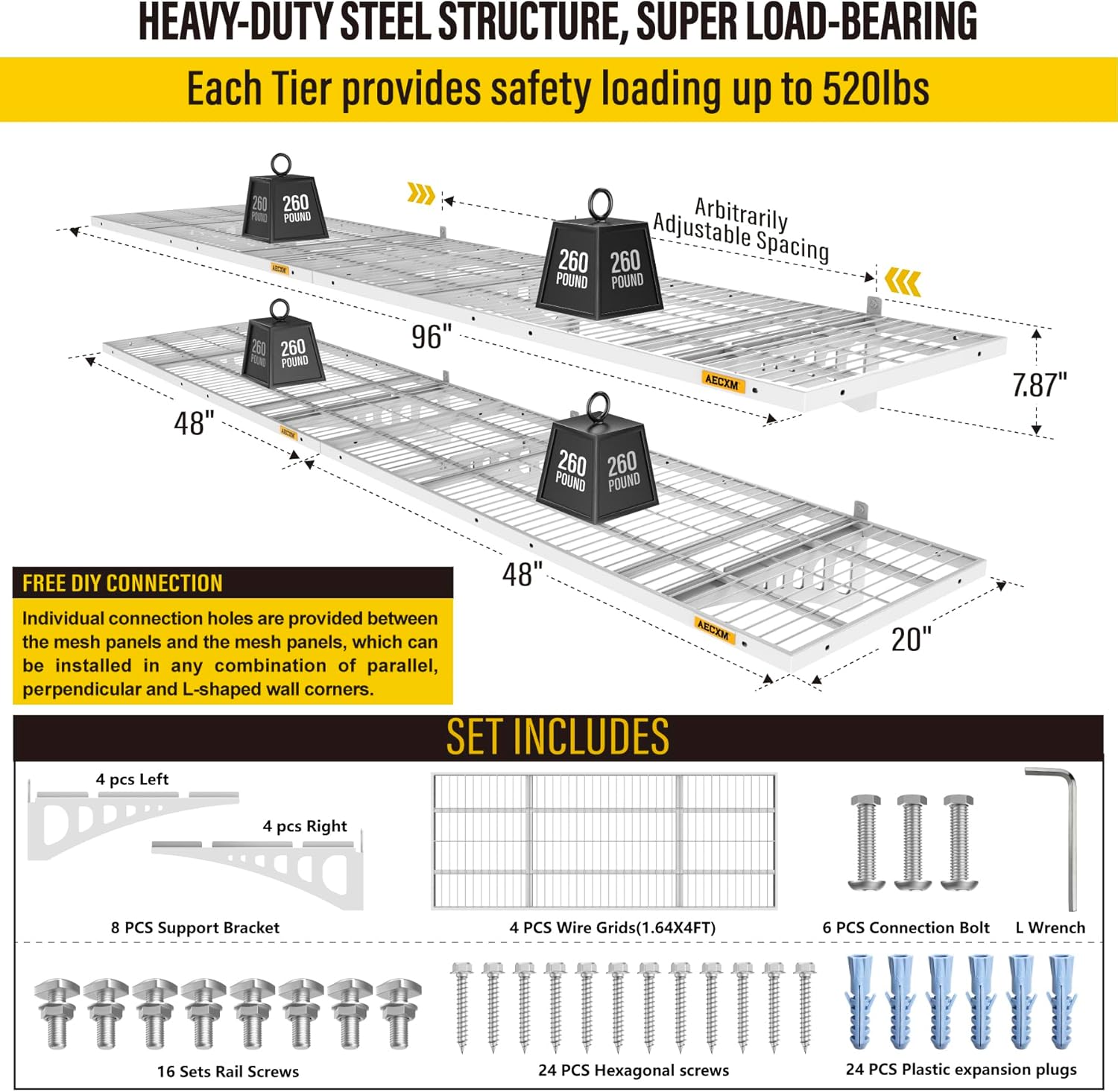 - 1120 lb Load Tested: Our garage wall shelves undergo rigorous testing, with each individual unit supporting 280 lbs. The 4-pack (1.64x4ft) offers a total weight capacity of 1120 lbs