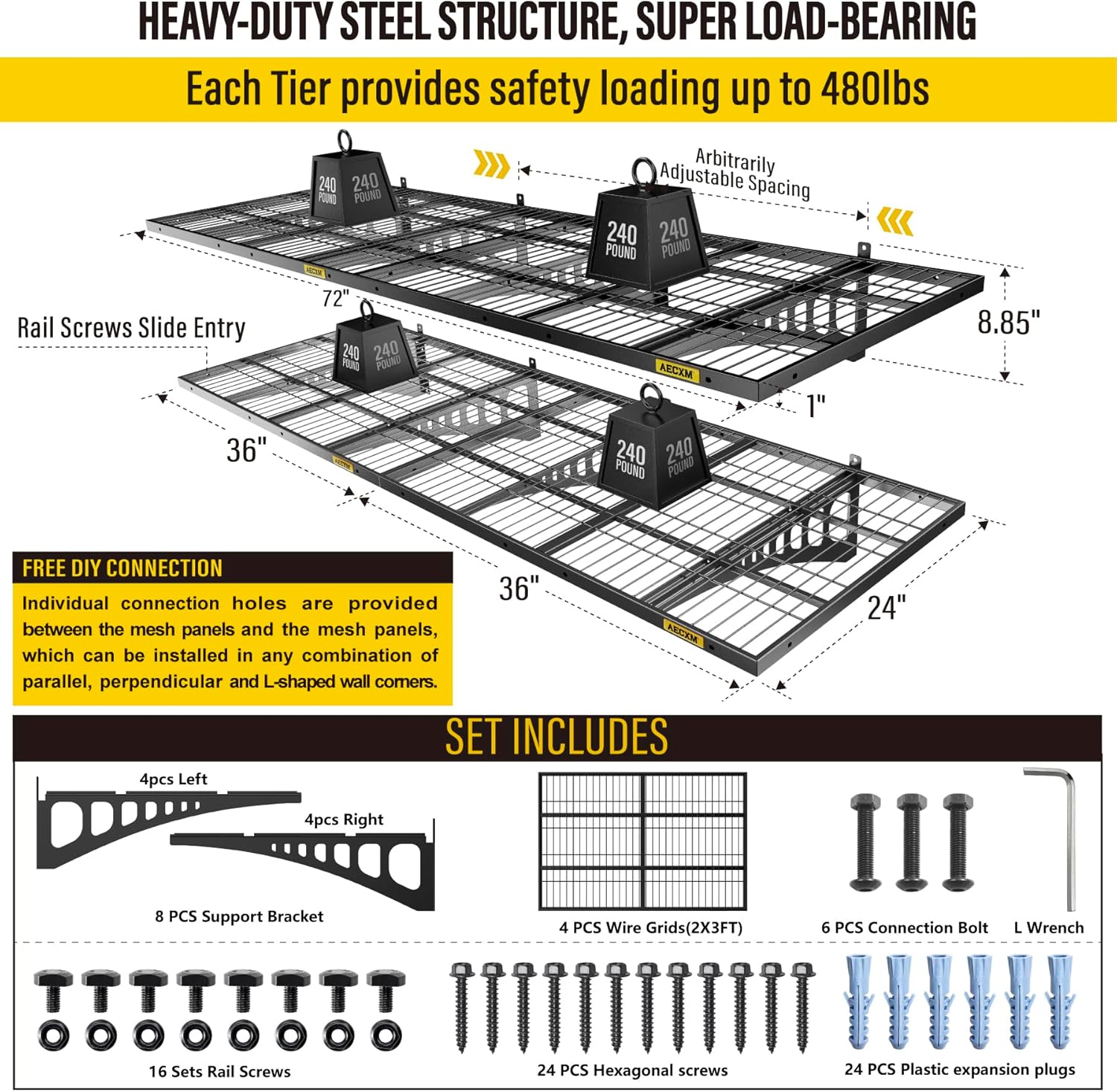 - Customer Support: Aecxm offers full after-sales service to protect your purchase. Contact us anytime for assistance. (Note: For brick or concrete walls, use expansion anchors to securely fasten the heavy duty wire shelving after drilling.)
