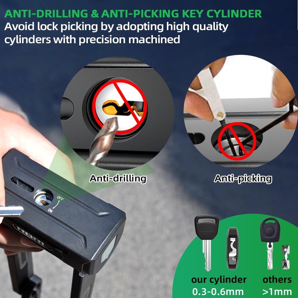 - 【Switzerland Technology Lock Cylinder】: RBRL heavy duty bike lock adopts swiss lock cylinder technology. The cylinder tooth pattern is complex and diverse, only 0.3-0.6mm snake shaped, which effectively prevents the opening of universal key, sheet metal foil and special unlocking tool
