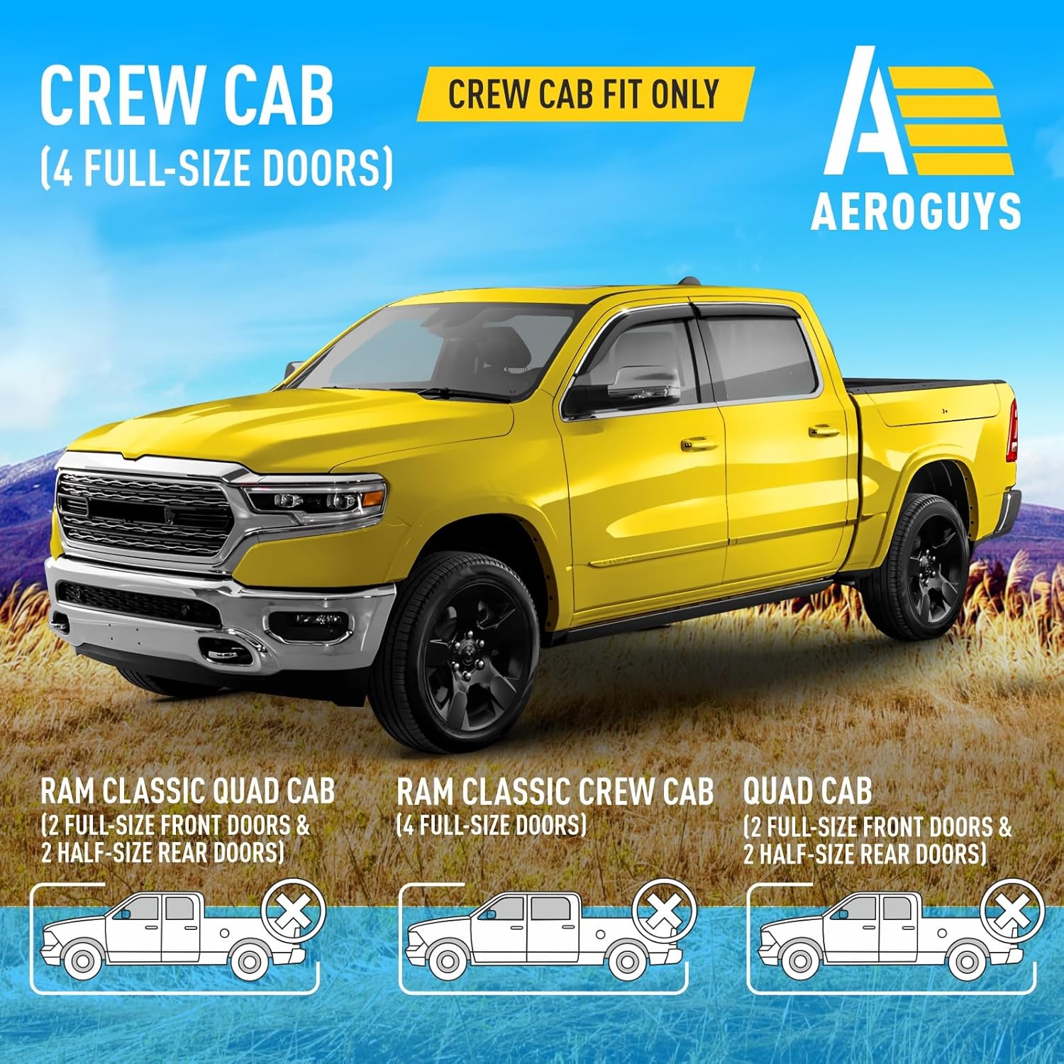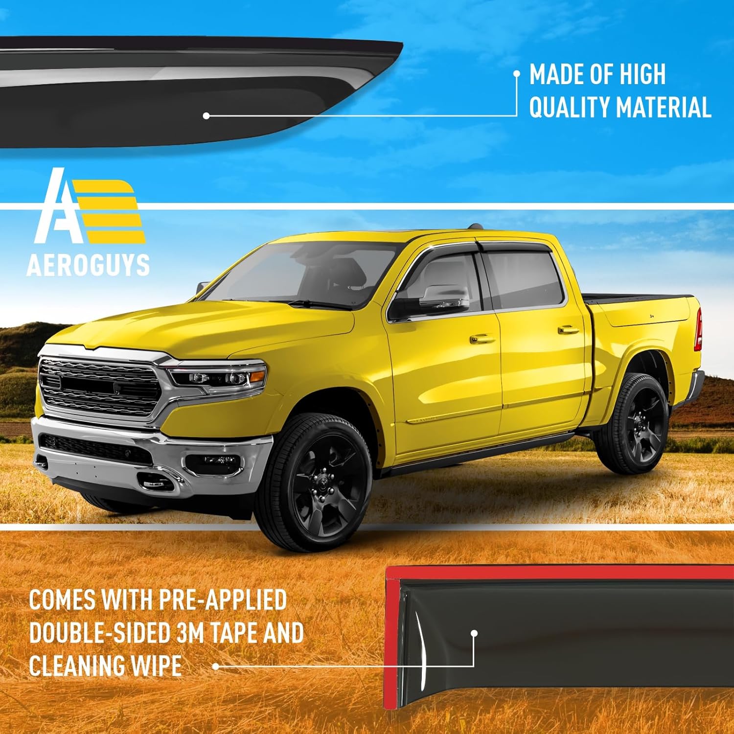 Extra Durable Window Deflectors Chrome Trim Tape-On Window Visors Rain Guards Fit for Dodge Ram 1500 2019-2025 Crew Cab, Sun Visors, Wind Vent for Shades, Exterior Car Accessories - 4pcs. AG0178