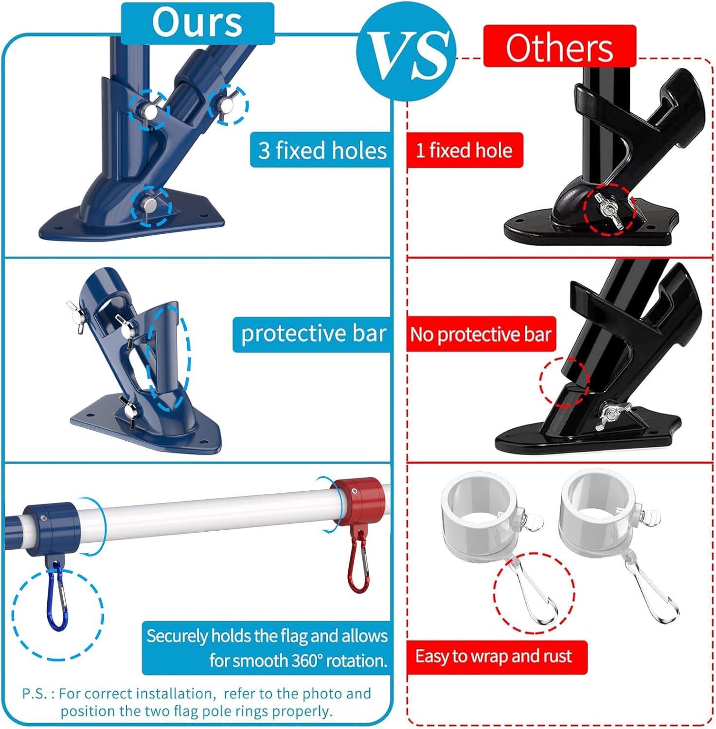- Exquisite Design: 1*Flag Pole Diameter 1'', 1*Upgraded Bracket, 2*New Tangle Free Rings, 4*Carabiners, 1*Top Ball, 1*Installation Manual