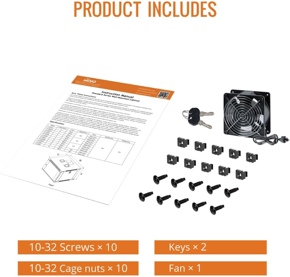 Tecmojo 6U Wall Mount Server Cabinet IT Network Rack Enclosure Lockable Door and Side Panels Black, Cooling Fan, Standard Glass Door, 450mm Depth, for 19” IT Equipment, A/V Devices