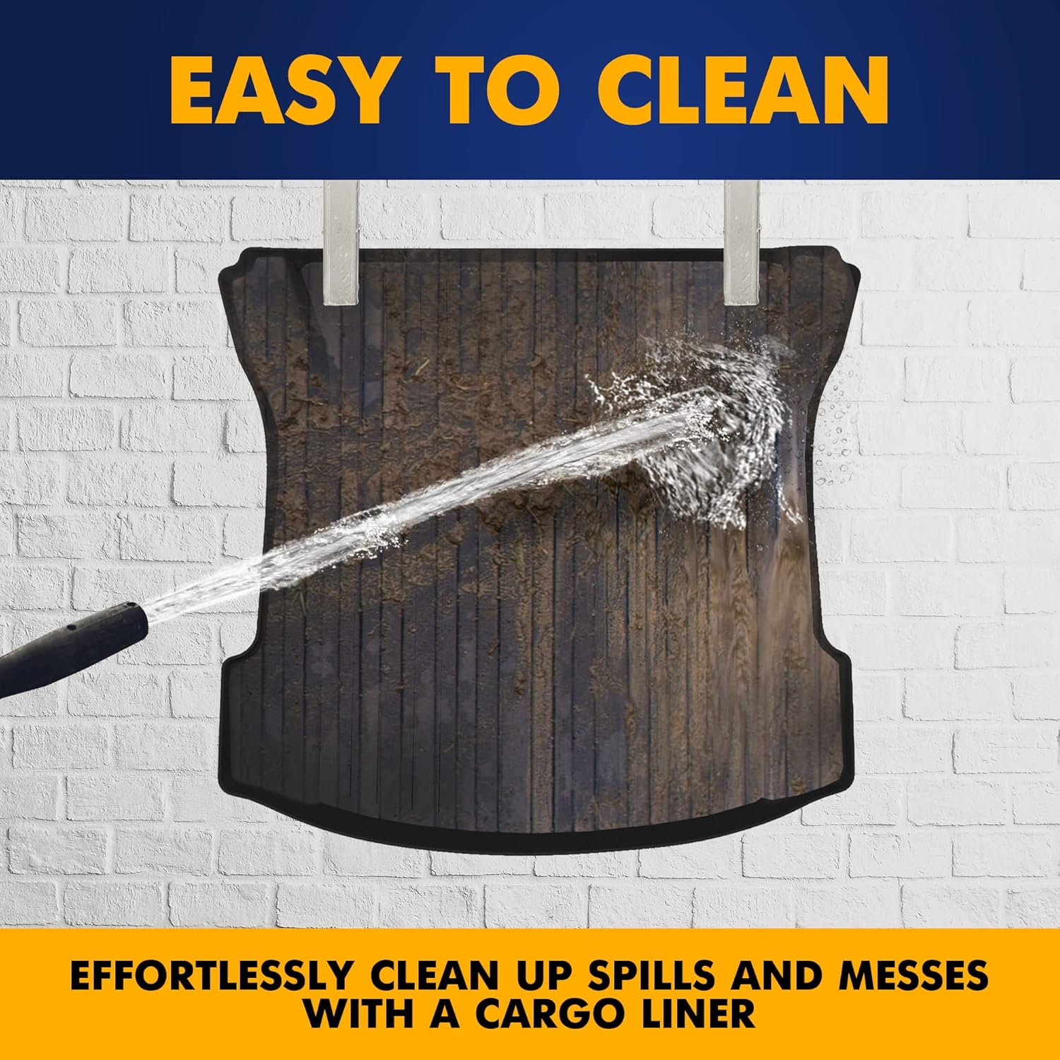 - EASY-CLEAN DESIGN - Featuring an anti-skid, stain-resistant surface, our trunk liners are a breeze to maintain. The raised exterior lip traps spills, maintaining your trunk's cleanliness. Keep it looking fresh by simply rinsing with water and watch it restore its gleam!