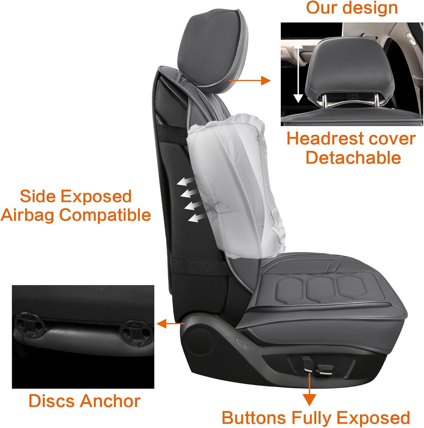 - Airbag Compatible: Our universal fit seat covers with a unique visual design are fully compatible with any built-in airbags. And all the seat belt buckles are fully exposed for your daily safe use.