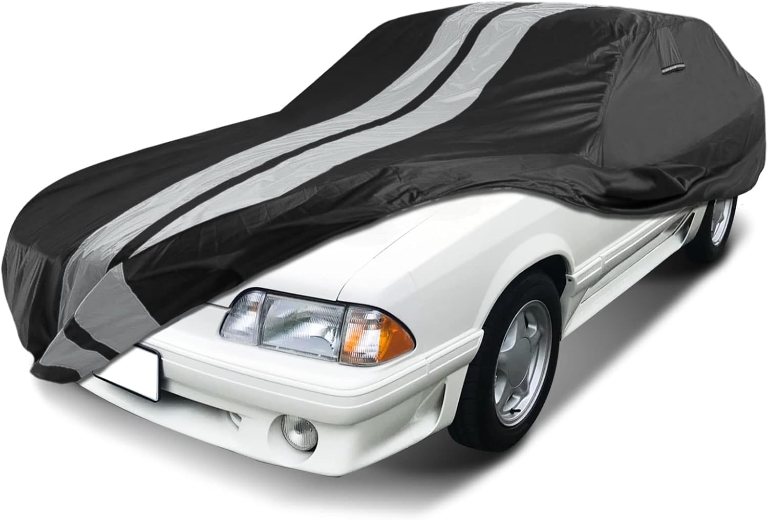 iCarCover Custom Car Cover for 1979-2004 Ford Mustang LX, GT Waterproof All Weather Rain Snow UV Sun Protector Full Exterior Indoor Outdoor Car Cover (Stripe - Black/Gray)