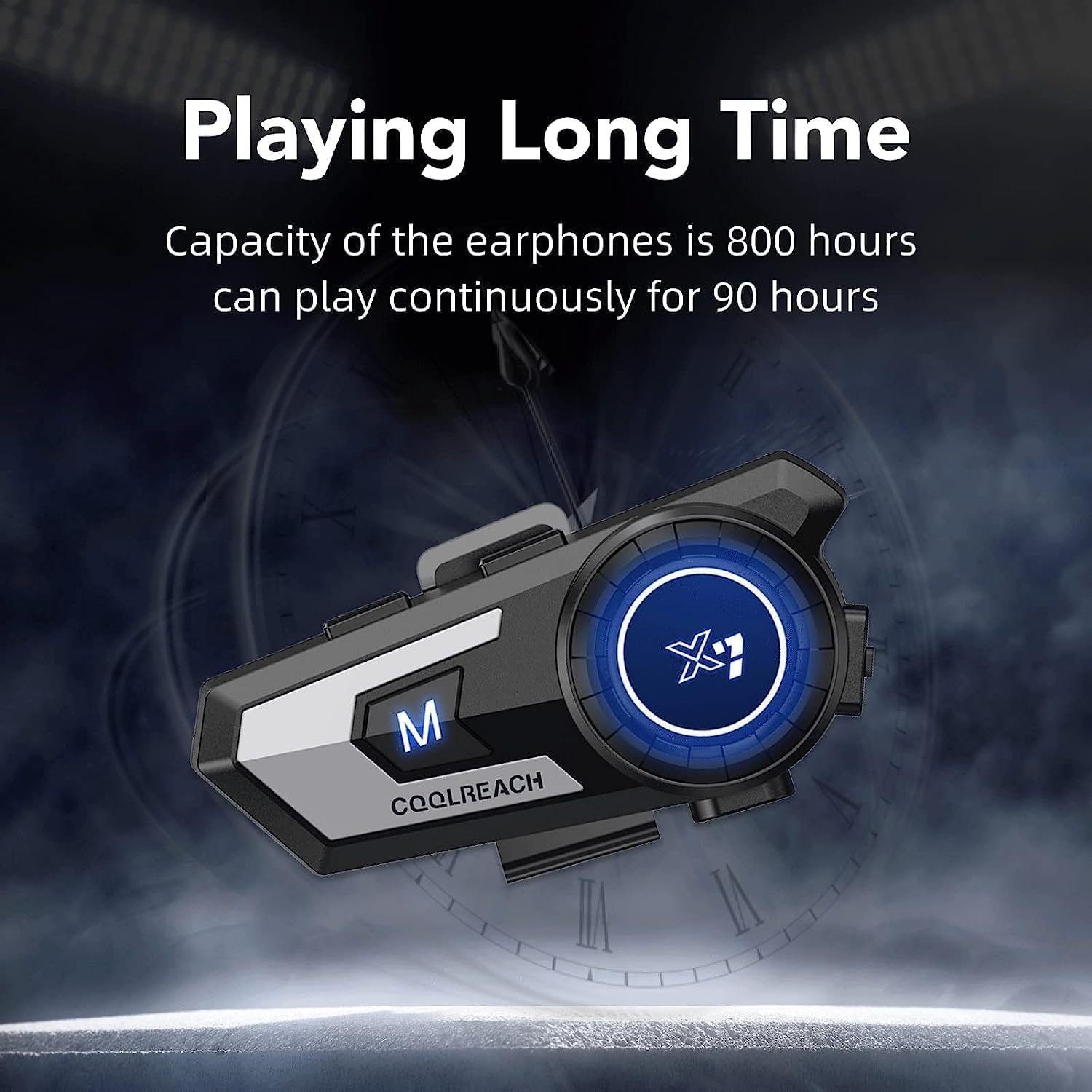 - 【800mA battery Long Play Time The battery】 Motorcycle helmet speakers Capacity of the earphones is 800 hours,which can play continuously for 90 hours.You don't need to charge them for a week when traveling outdoors,so you don't have to worry about charging the helmet earphones.Connect two mobile phones at the same time,The phone can display the battery level of the headphones.