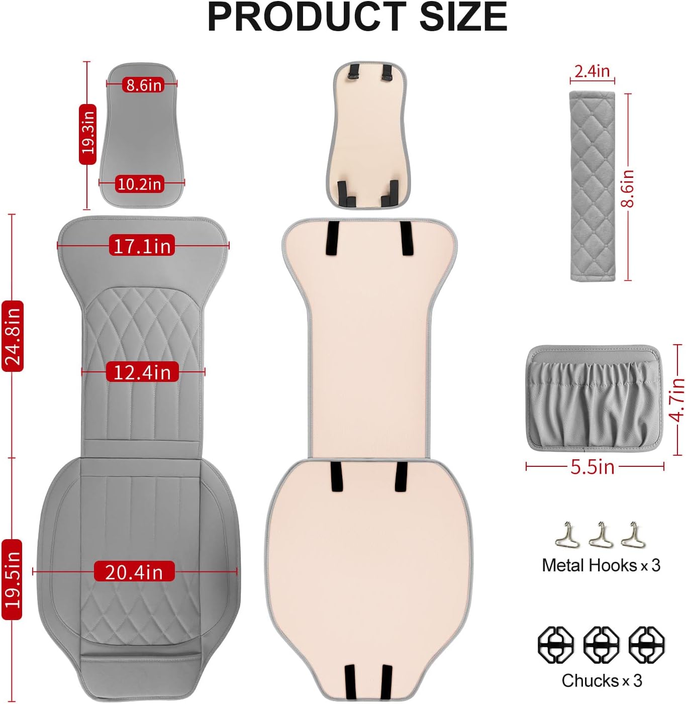 - Package Includes:car seat cover*1, car pocket organizer*1οΌcar seat belt pad*1,metal hook*3, chuck*3,installation manual * 1.Please contact us if you have any questions about the product, and we will reply you within 24 hours.