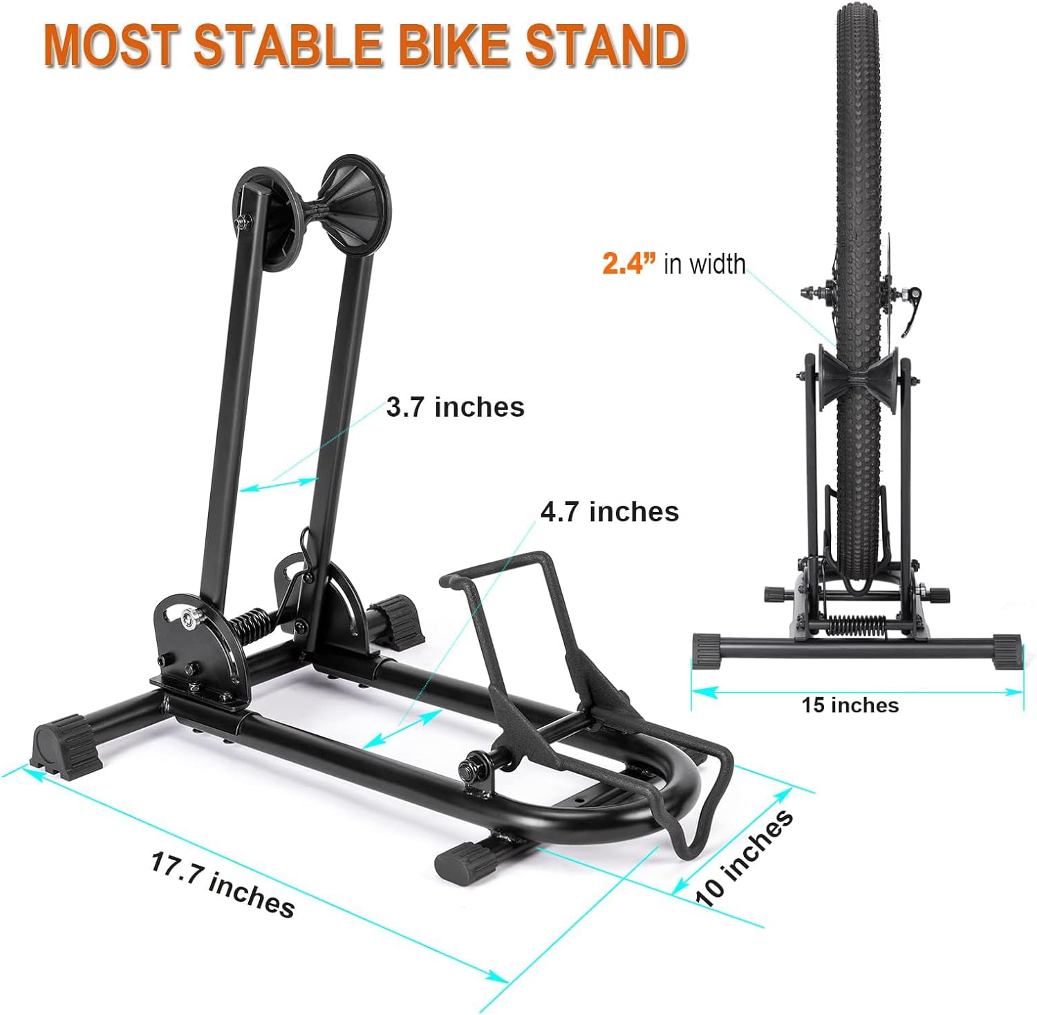 - 【COMPATIBILITY】: The Bike Floor Stand will fit almost all bikes range from Kids Bikes, 26" to 29" Mountain Bikes, 650c -700c Road Bikes,cyclocross bikes, hybrid bikes and kids' bike, EXCEPT those bikes with the tires more than 2.4" in width.It is not recommended for heavy e-bikes though.