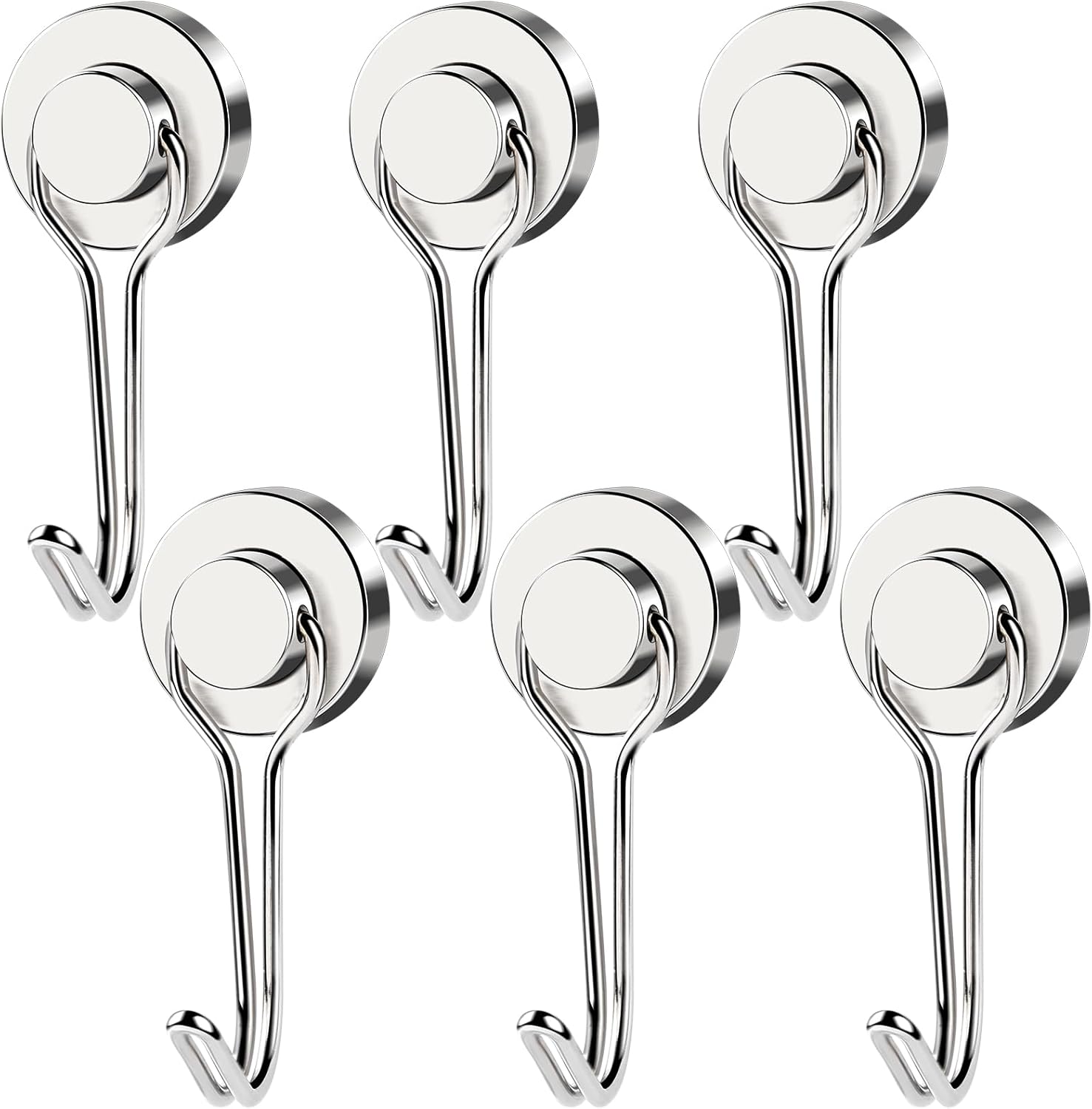MIKEDE Magnetic Hooks, 40LB Neodymium Magnet Hooks Heavy Duty, Strong Magnetic Swivel Hooks for Hanging, Rust Proof Strong 6 Pack Magnets with Hook for Fridge, Toolbox, Storage