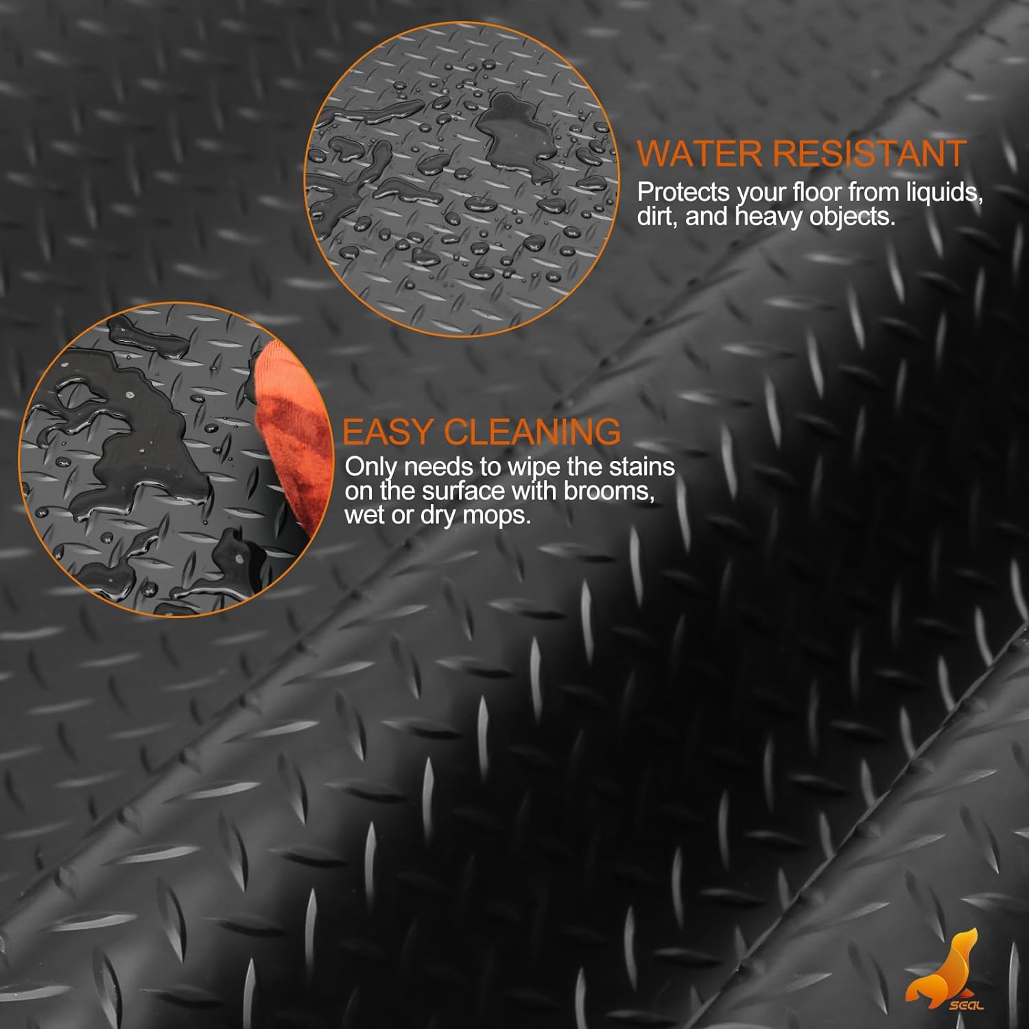 - [Protect Your Floors Like Never Before] - Keep your garage floor looking new with SEAL’s mats. Their special diamond plate design makes sure you won’t slip, giving you a safe way to walk in and out. These mats stop all kinds of damage like scratches and spills from ruining your floors, offering full coverage.