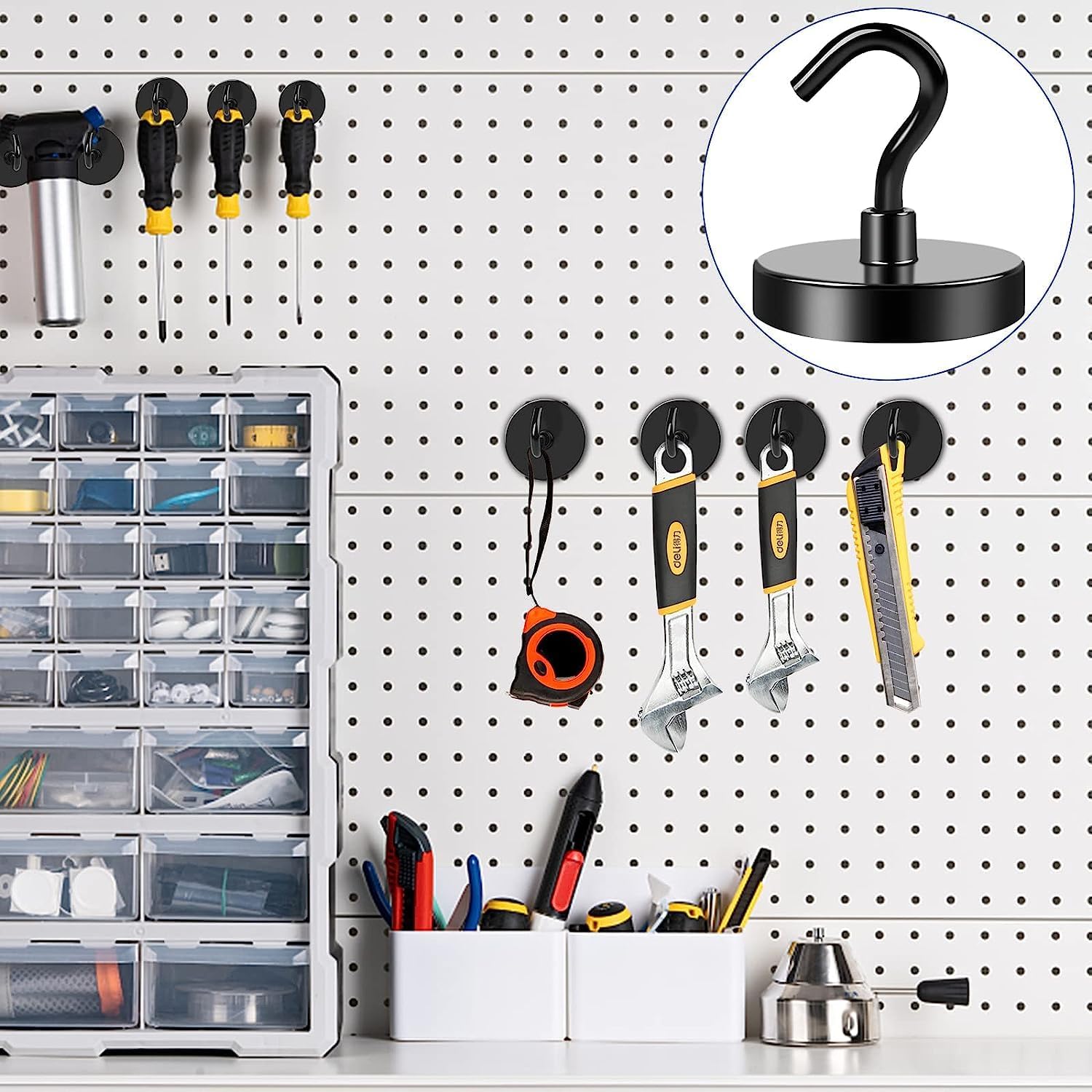 - 【ATTENTION PLEASE】Due to the strong magnetism of the magnetic hooks for refrigerator, if you want to use large magnetic hooks on stainless steel refrigerators, we suggest to put a tissue or something else between the magnetic grill hooks and the fridge surface to protect the surface from scratching.
