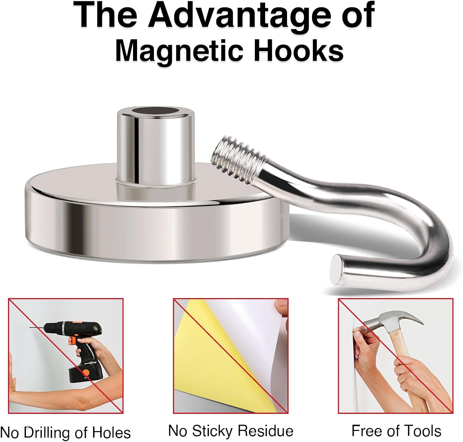 - POWERFUL MAGNETIC HOOKS:Heavy duty magnetic hooks embedded with a high grade Nd-Fe-B, these magnetic hooks offer strong pulling force under steel. As a leading seller of magnetic hooks, you can find any type of magnet hooks you need in our store
