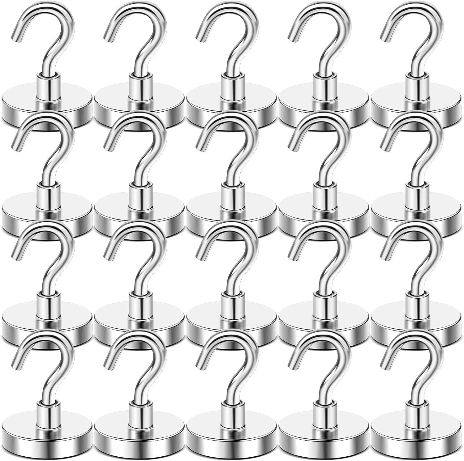 DIYMAG Magnetic Hooks, 118 LB Heavy Duty Strong Magnet with Hook, Rare Earth Neodymium Magnets for Hanging, Magnetics Hanger for Curtain, Home, Kitchen, Workplace, 20 Packs