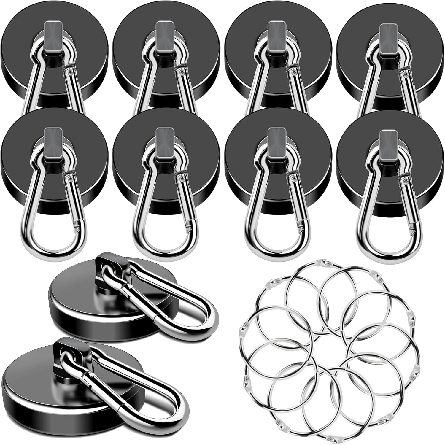 MIKEDE Strong Magnetic Hooks, 150LB Neodymium Black Magnets Heavy Duty with Swivel Carabiner Hook, Magnets with Hooks for Locker, Kitchen, Cruise Cabin, Office - 10 Pack