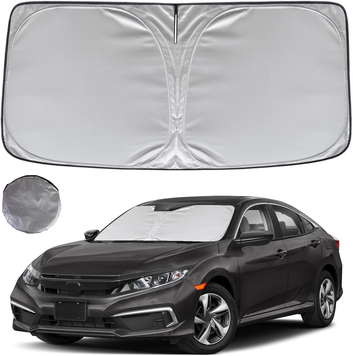 - KAYZT windshield sun shade is precise custom fit for 2016 2017 2018 2019 2020 2021 Honda Civic, Thoroughly covers every corner of the windshield, Tailored to accommodate rear view mirror, Ensuring a seamless and snug fit without obstruction, Must have car accessories for Civic