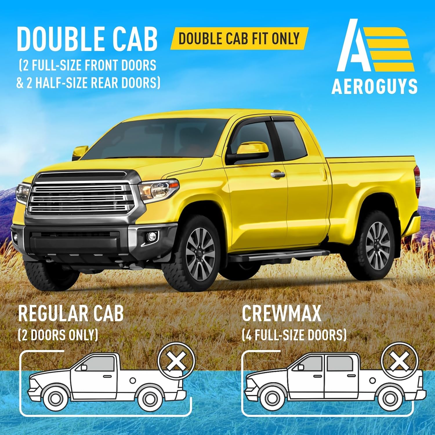 - No Tools Needed, Quick and Easy Assembly β These rain guards are very easy to fit. TAPE-ON INSTALLATION provides perfect fit for your truck. Just slip it onto your carβs window and your job is done within minutes. There is no drilling or no tools required. Be sure that AEROGUYS window deflectors are water resistant, sun protective and will not bend, break or crack regardless of the weather conditions.
